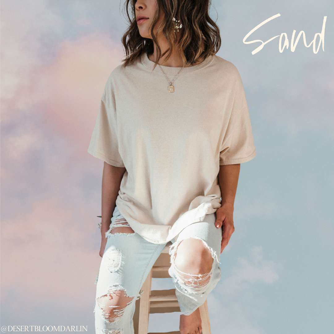 Our sweatshirts and tees are true to size. For a more oversized fit, we recommend sizing up.