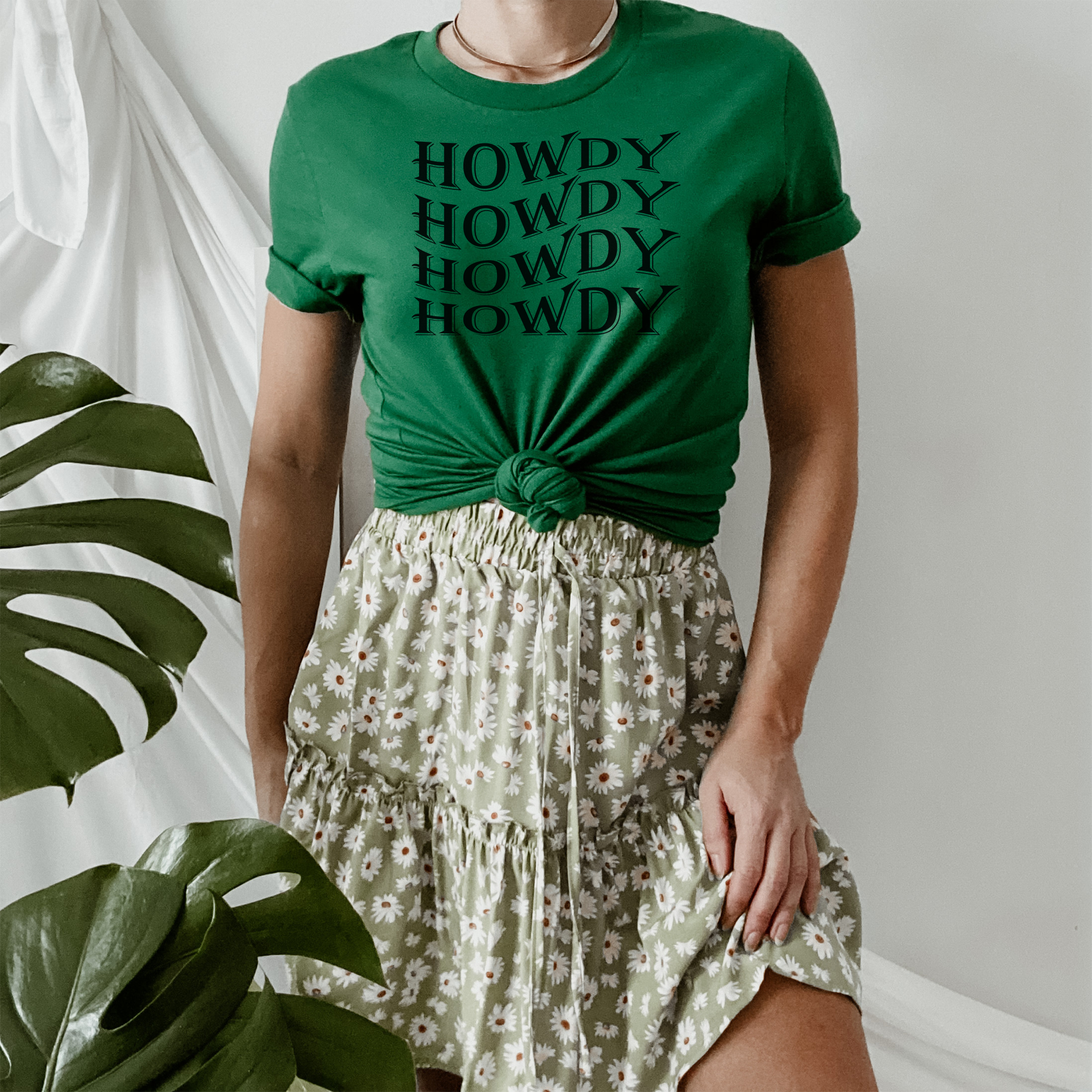 Introducing the "Howdy" Western t-shirt, the perfect addition to your wardrobe with its unique design and comfortable fit. Here are some key points to consider: