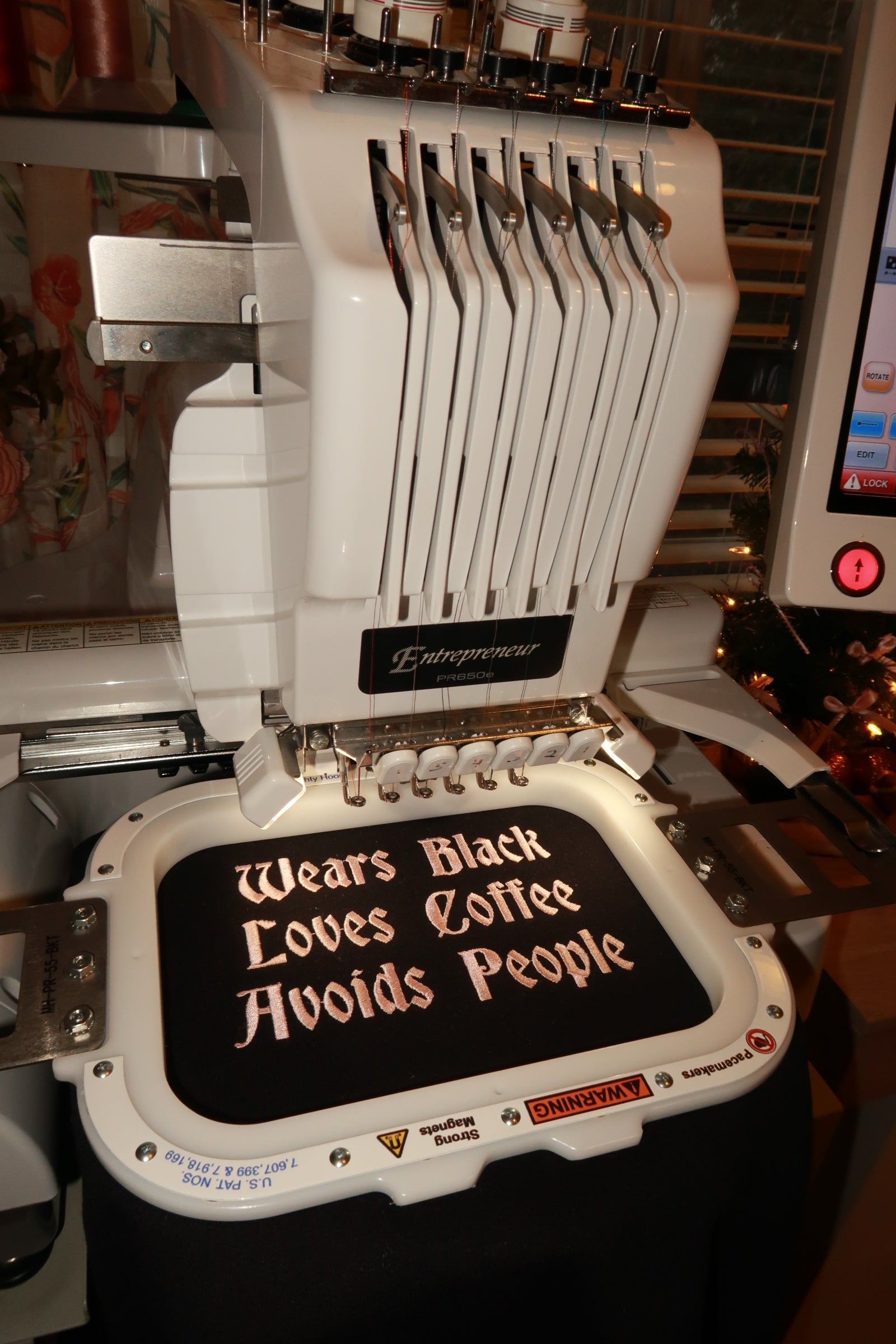 If you love to wear black, love coffee, and avoids people you NEED one of these sweatshirts! Super comfy and you can choose your own thread color.