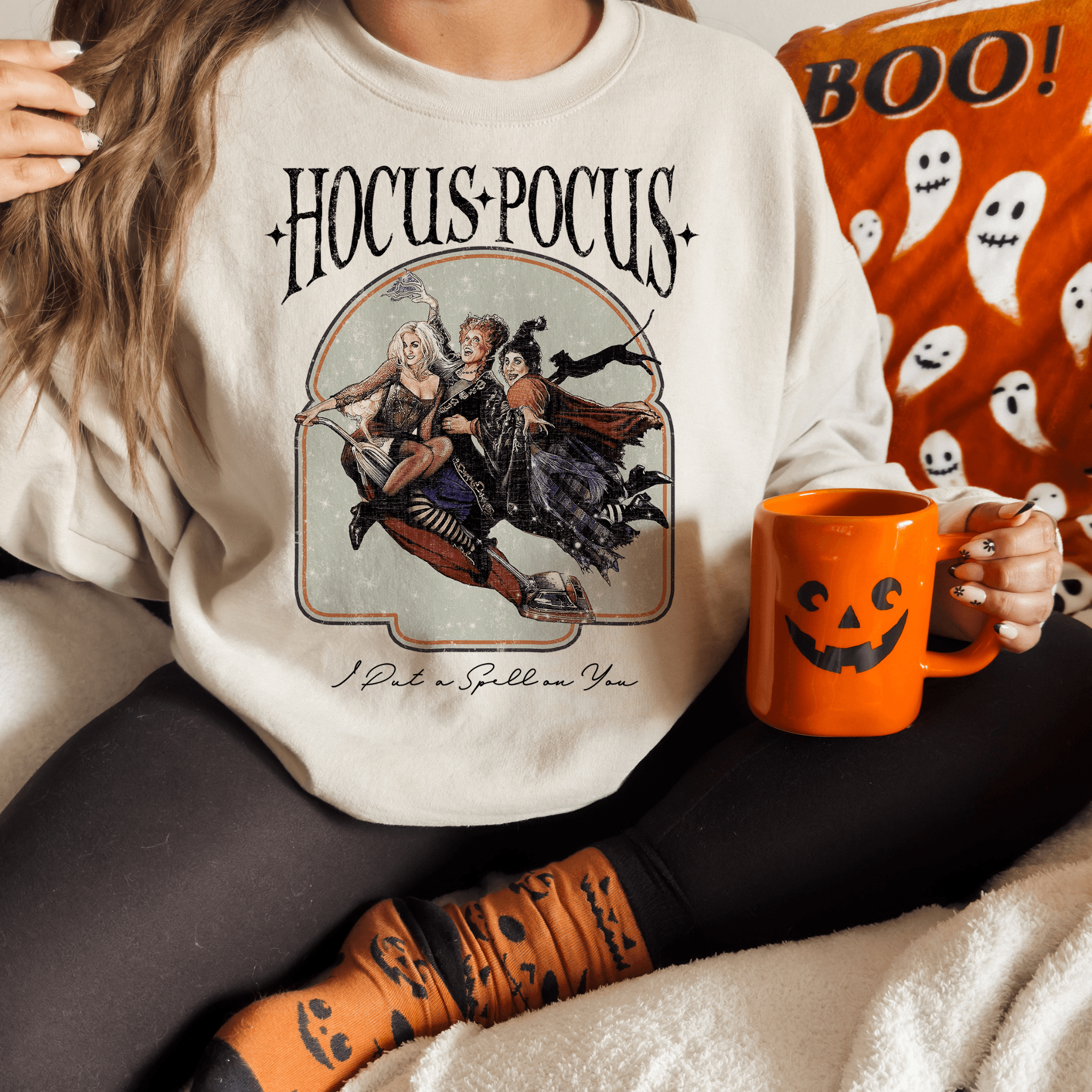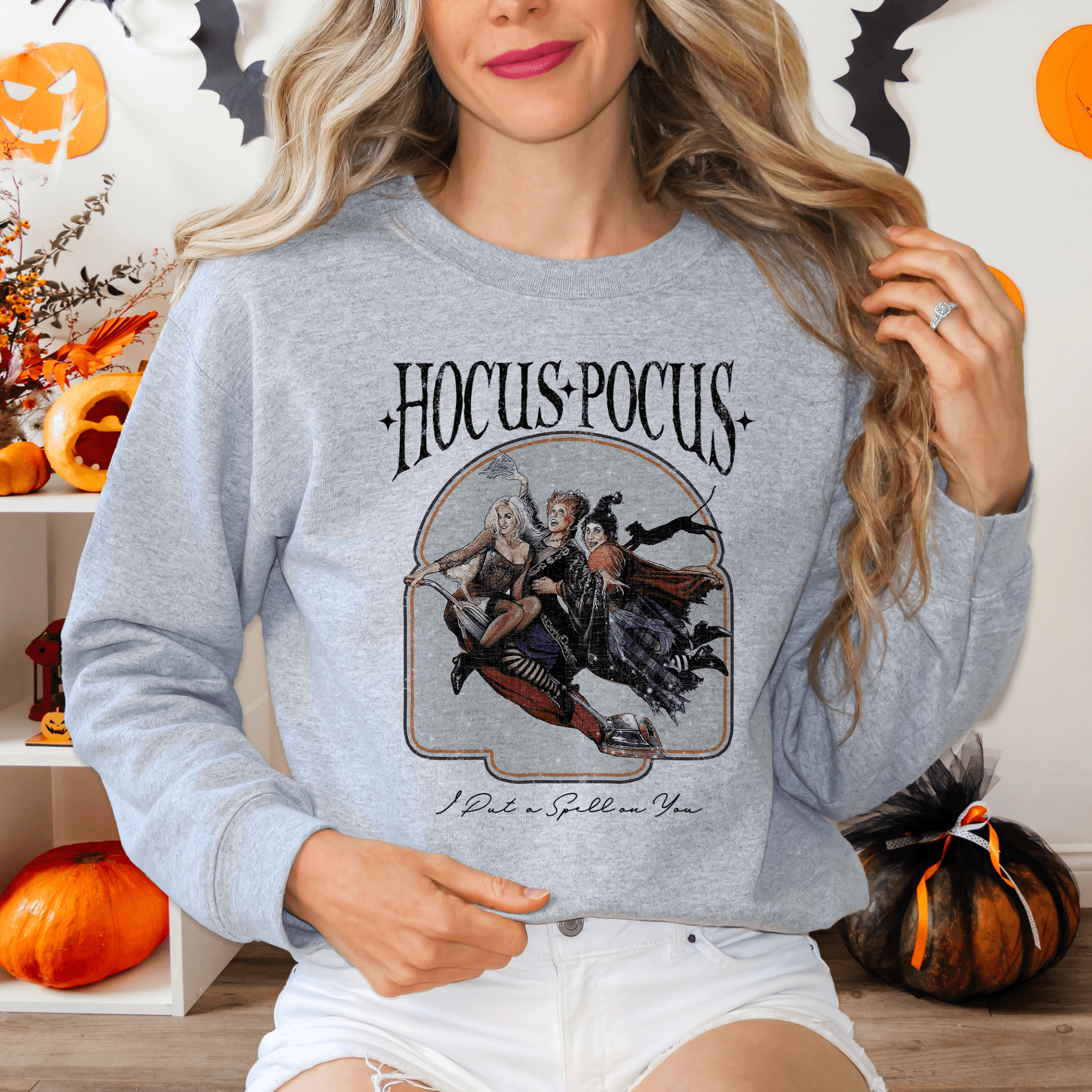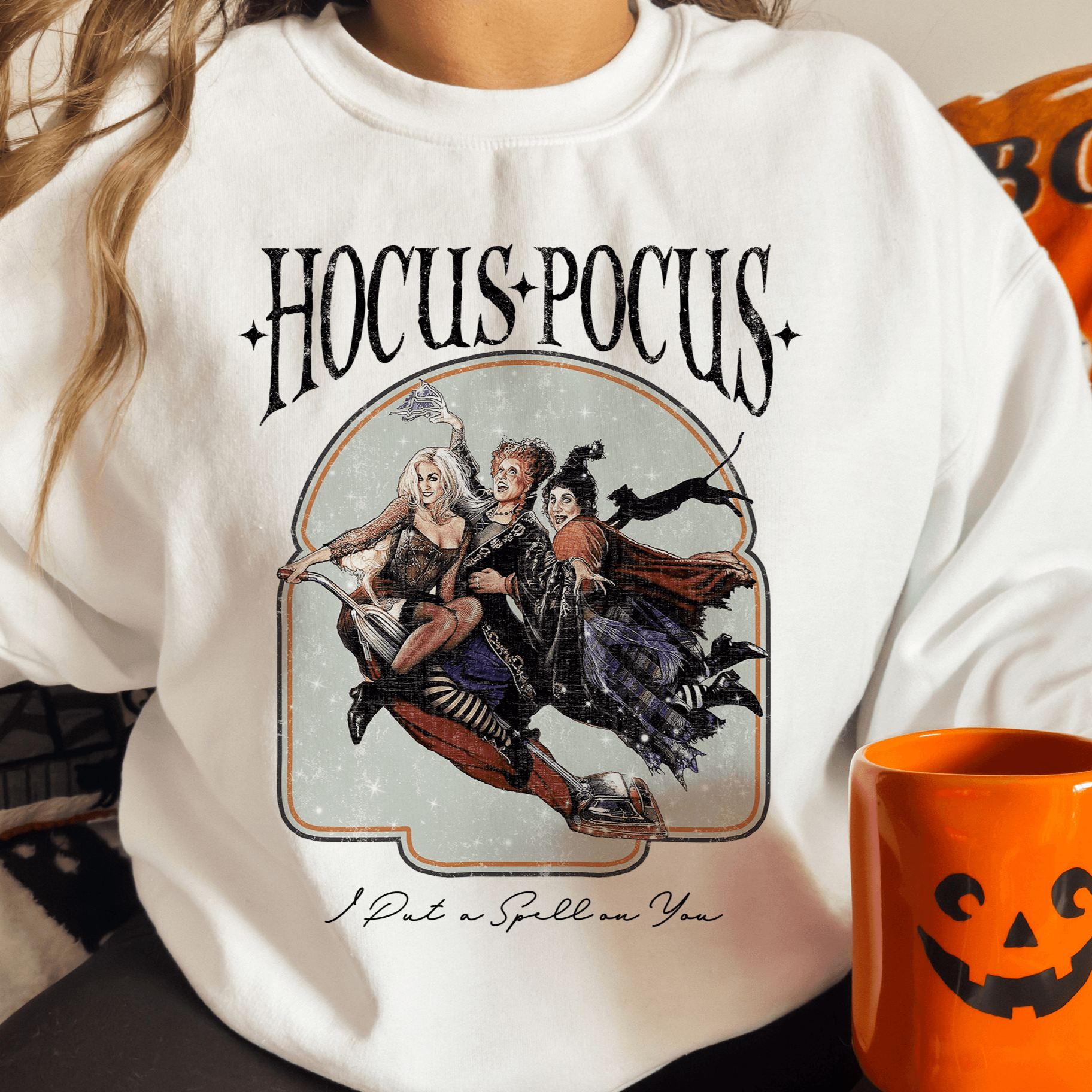 Get ready to feel the Halloween vibes with our cozy sweatshirt! Remember the mischievous Sanderson sisters from Hocus Pocus?