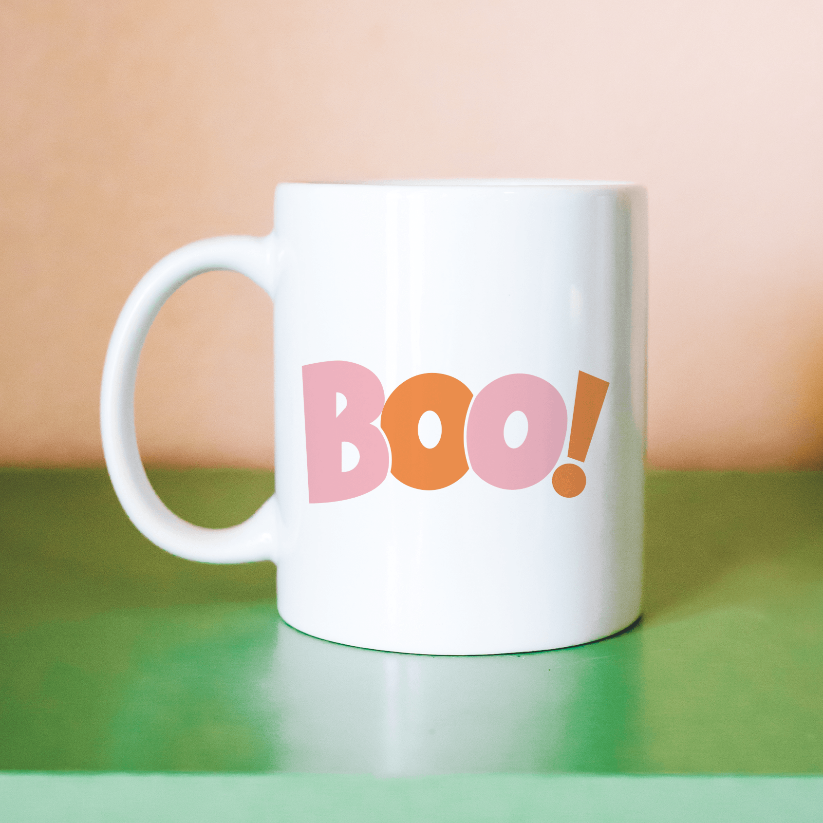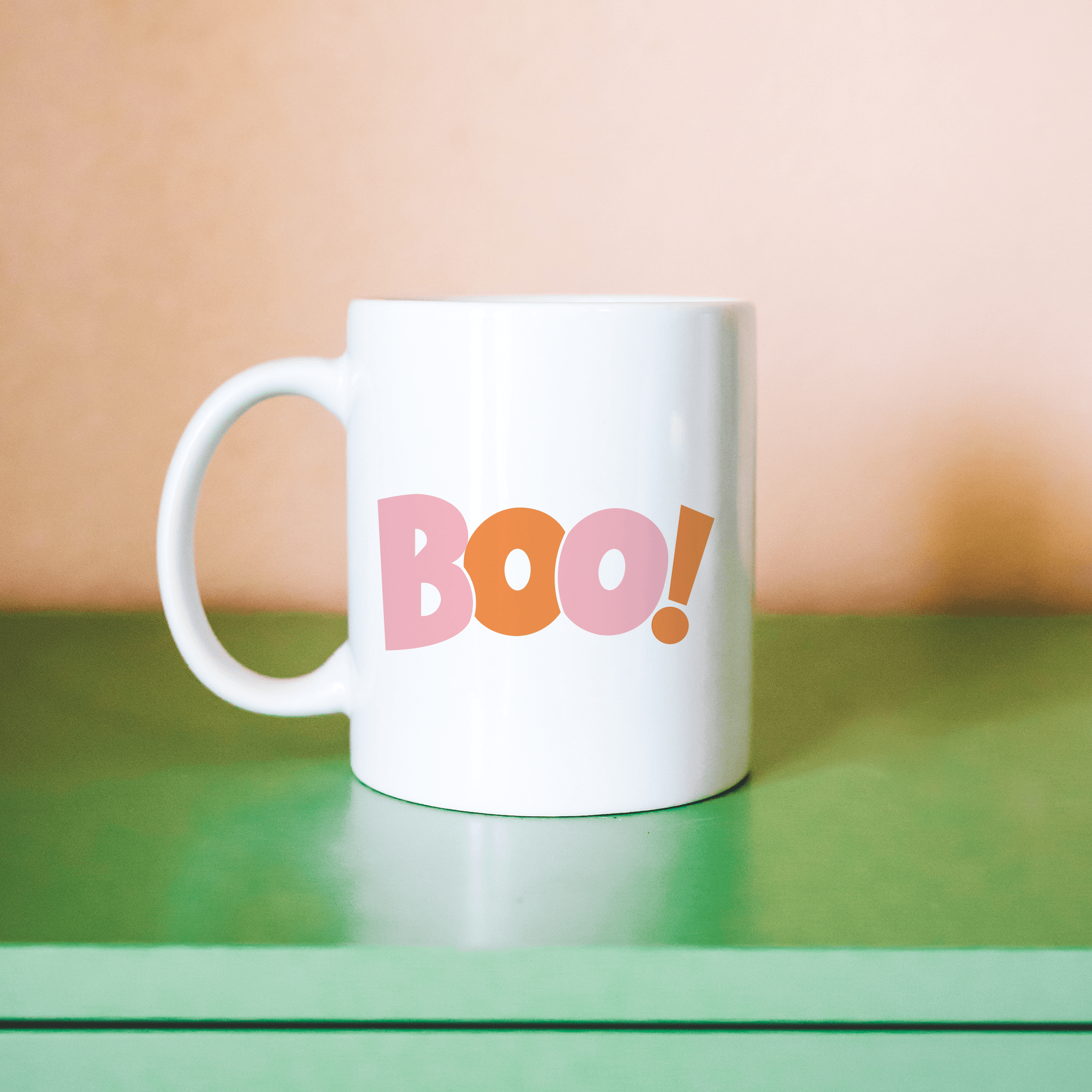 Get playful this Halloween with our vibrant 'Boo! Bubble Burst' mug. Popping in pink and orange bubble letters, it's a fresh twist on spooky season style. Proudly brought to you by our dedicated small business, it's a splash of fun for your fall kitchen.