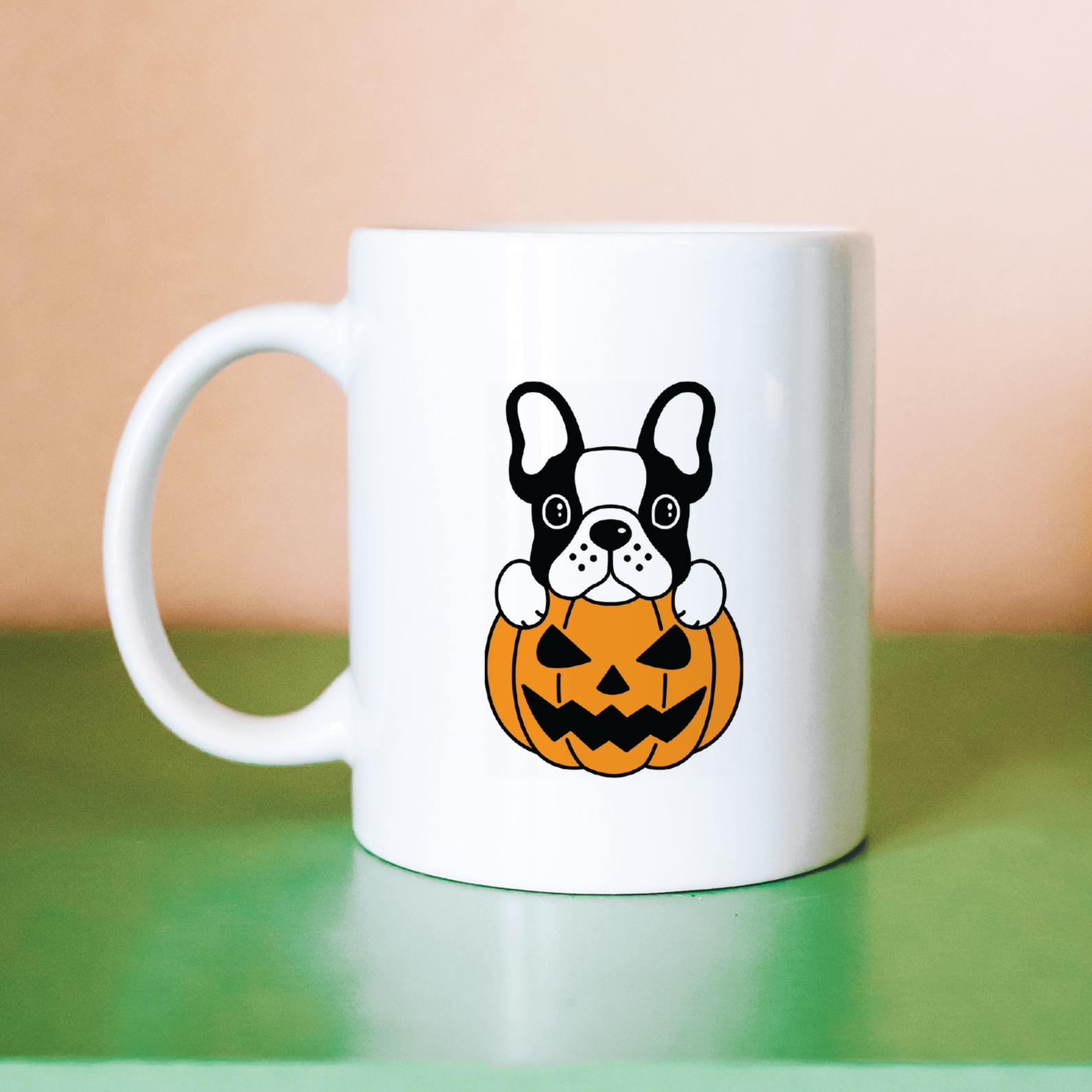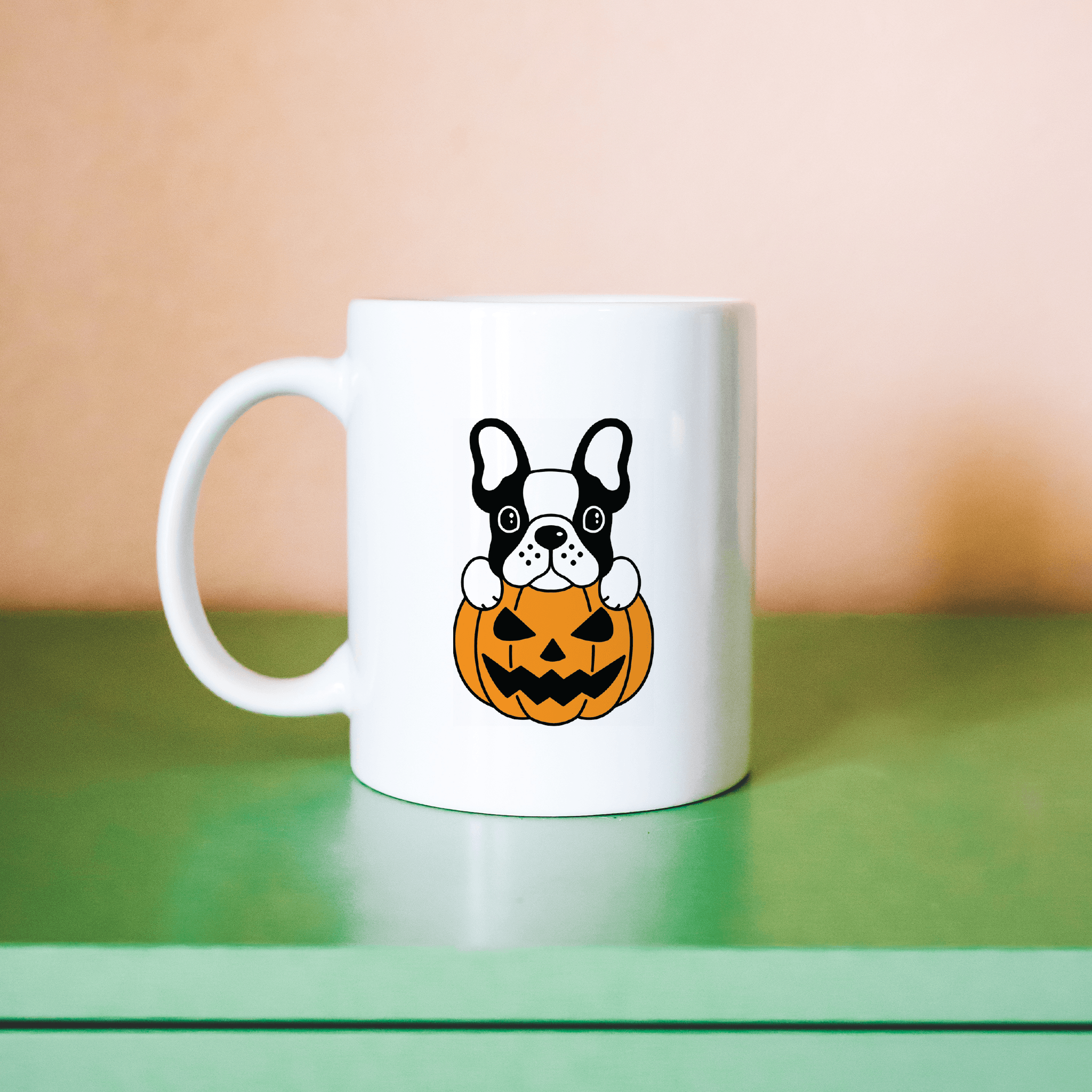 Make a statement this Halloween with our 'Frenchie Jack O' Lantern' mug. Featuring a delightful Frenchie snug inside a pumpkin, it's a unique blend of cute and spooky. Handcrafted with love, every purchase directly supports our small business journey.
