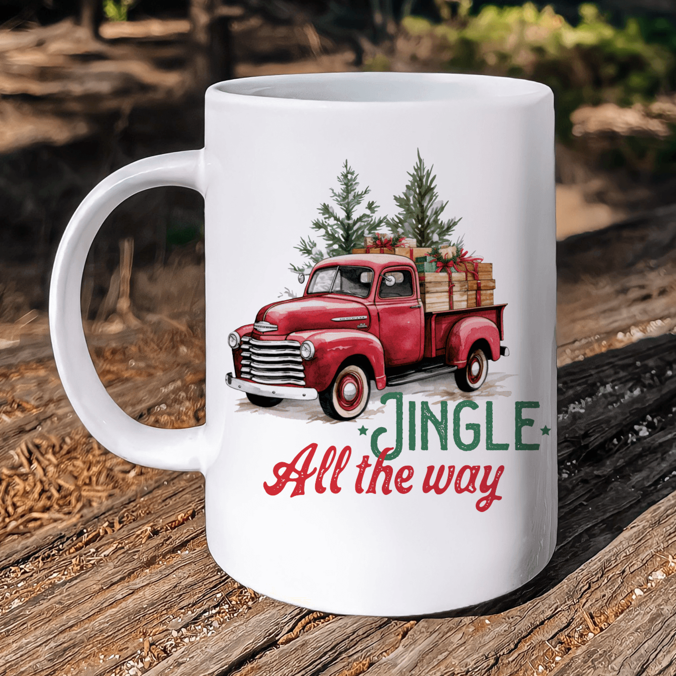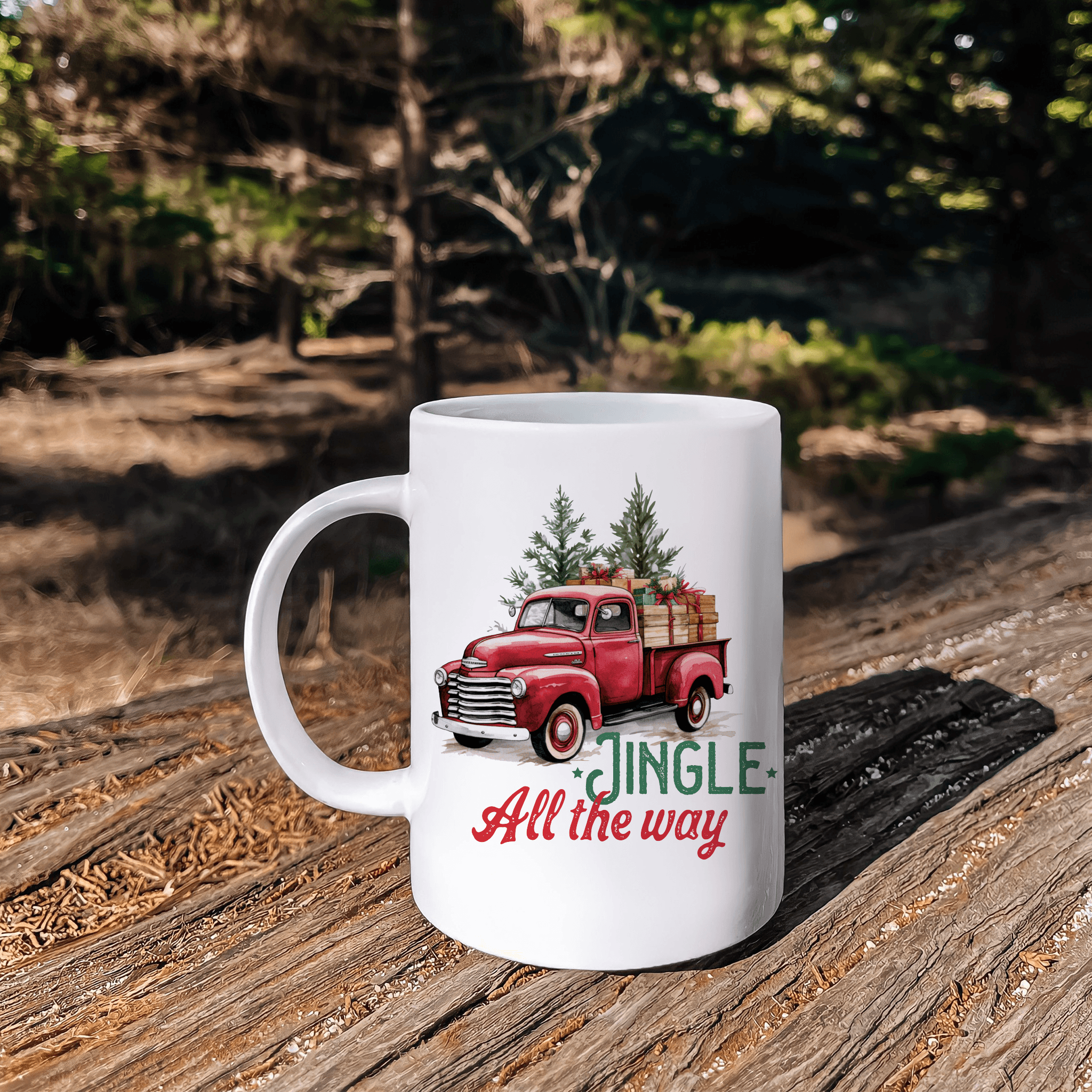 Sip your favorite beverage with holiday flair using our 'Vintage Red Truck Christmas Mug'. Boasting a classic truck design with a festive 'Jingle All the Way' message, this 12 oz ceramic mug adds a touch of nostalgia to your morning routine or coffee breaks. Exclusively from our small business, ensuring quality and unique craftsmanship. Perfect for gifting or treating yourself this festive season!