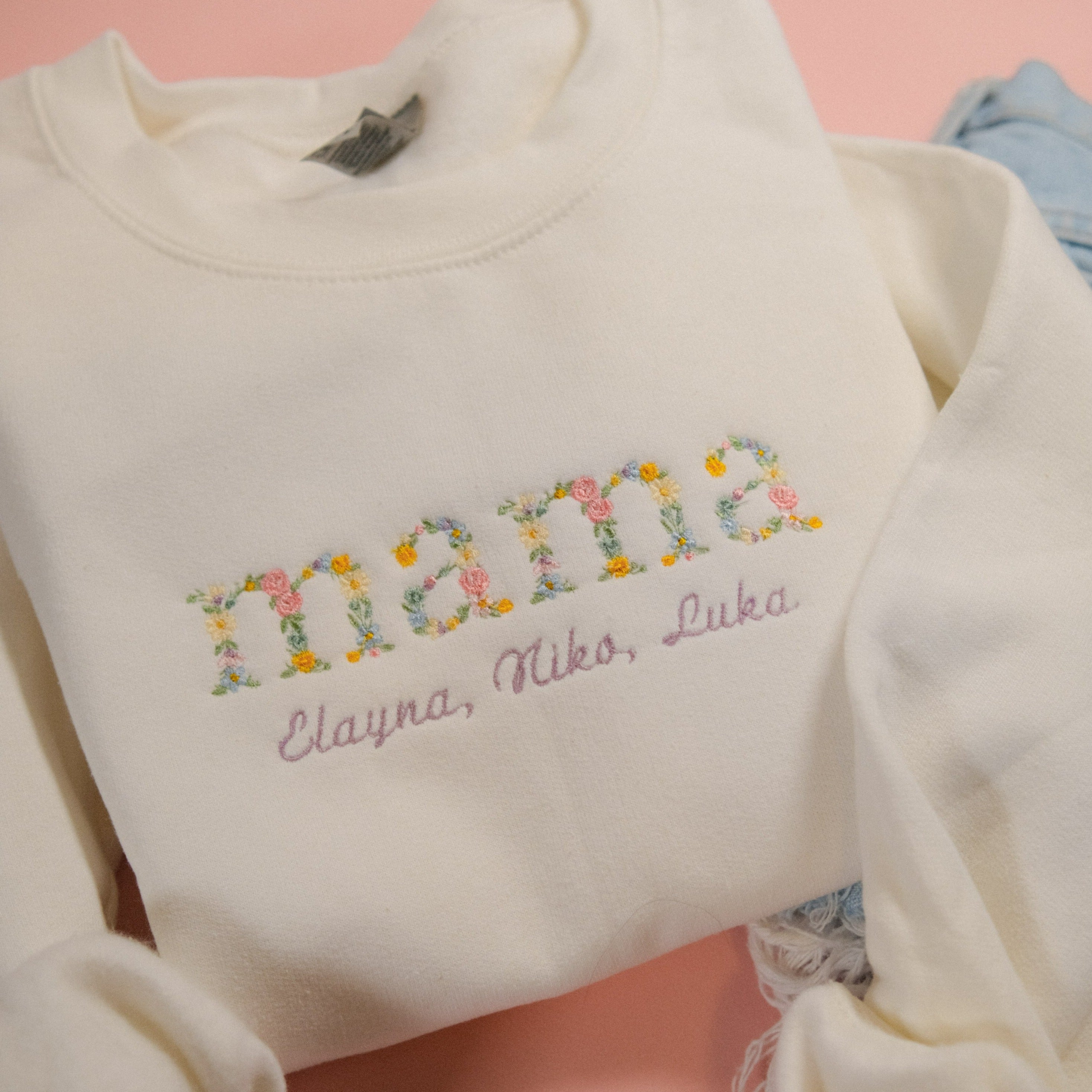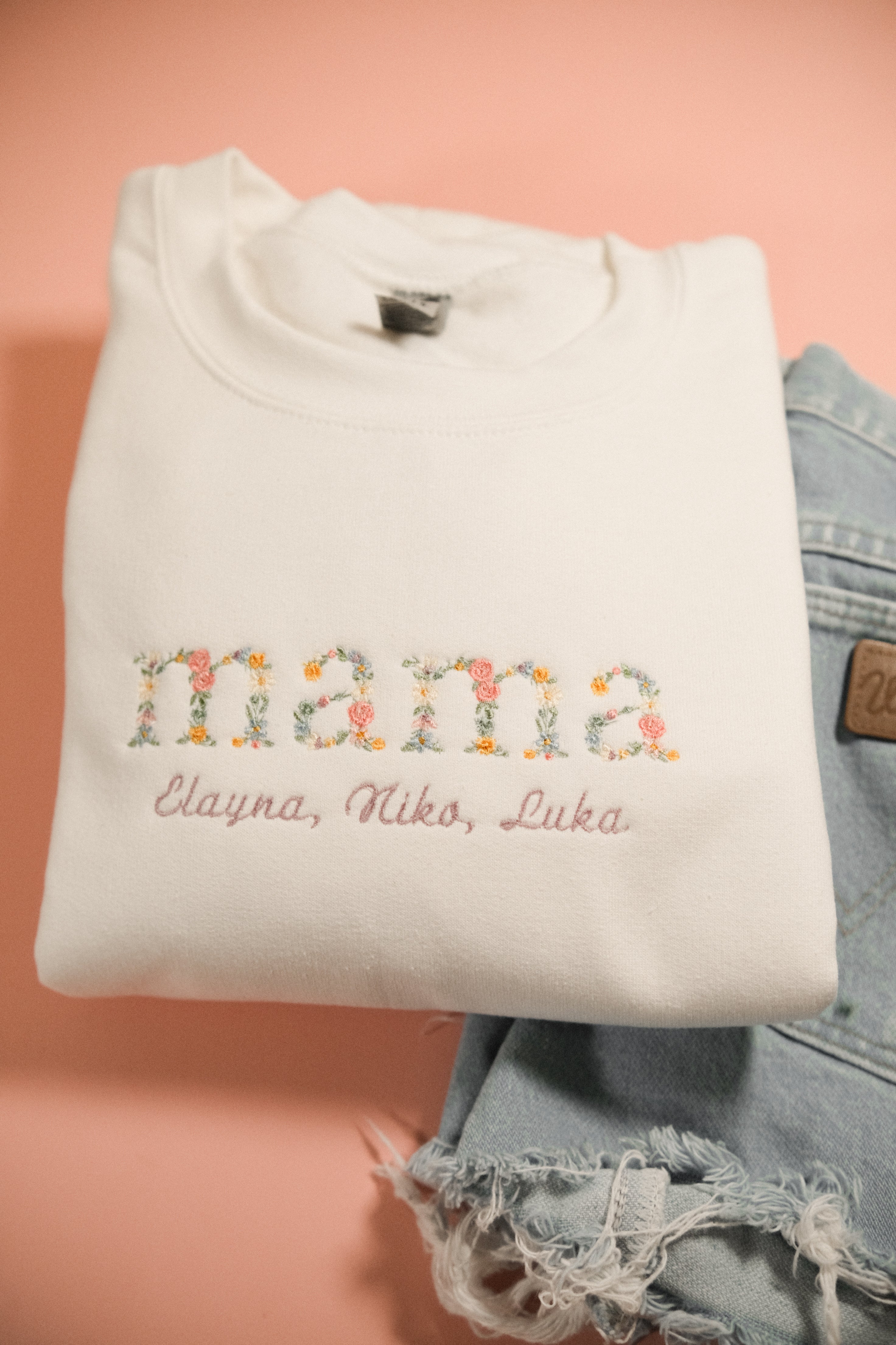 Embroidered Floral Mama Custom Crewneck Sweatshirt