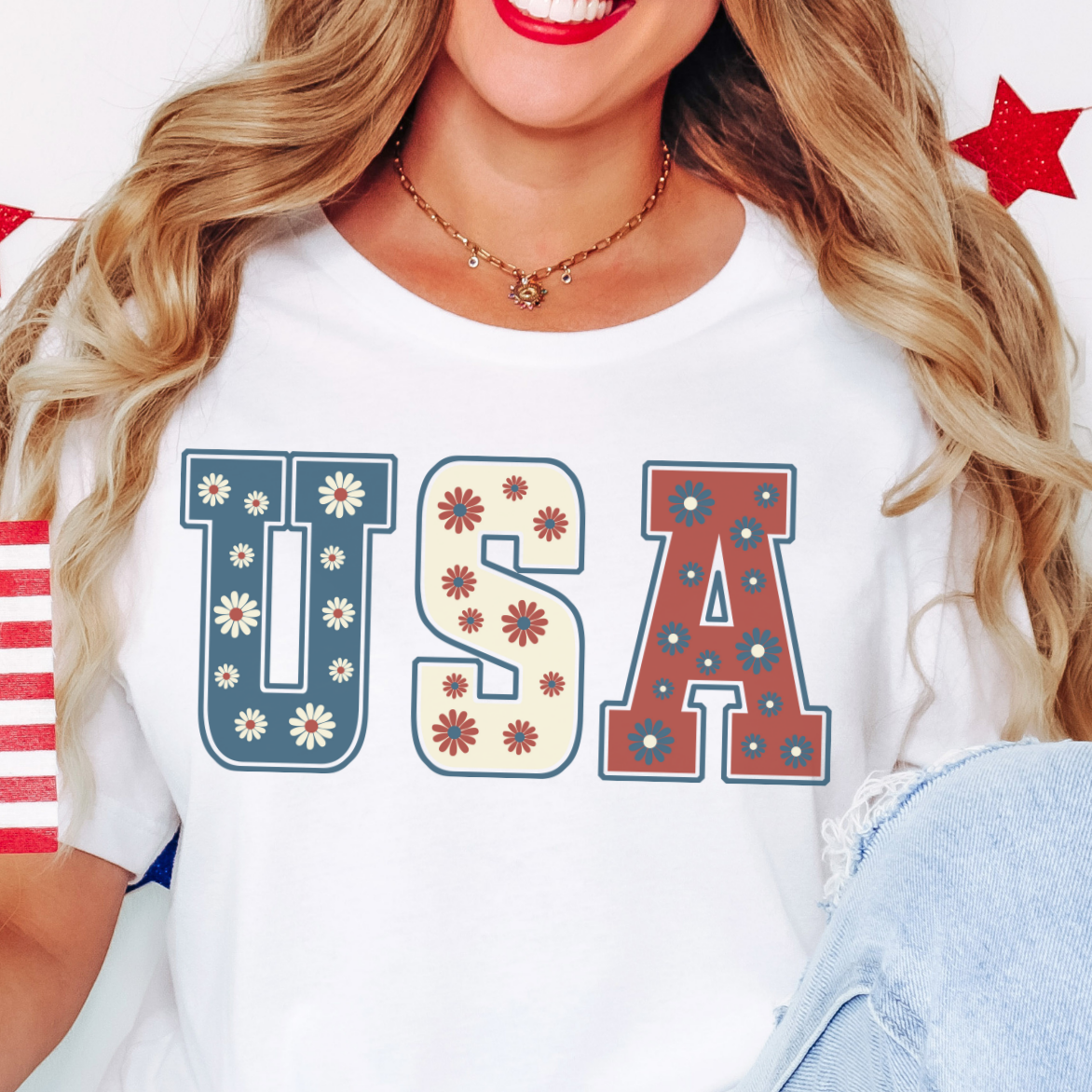 Get ready for Fourth of July with our Fourth of July Groovy USA Floral tee! Sublimated on a Gildan T Shirt. Please reach out if you would like to have it on a Bella Canvas Shirt instead.