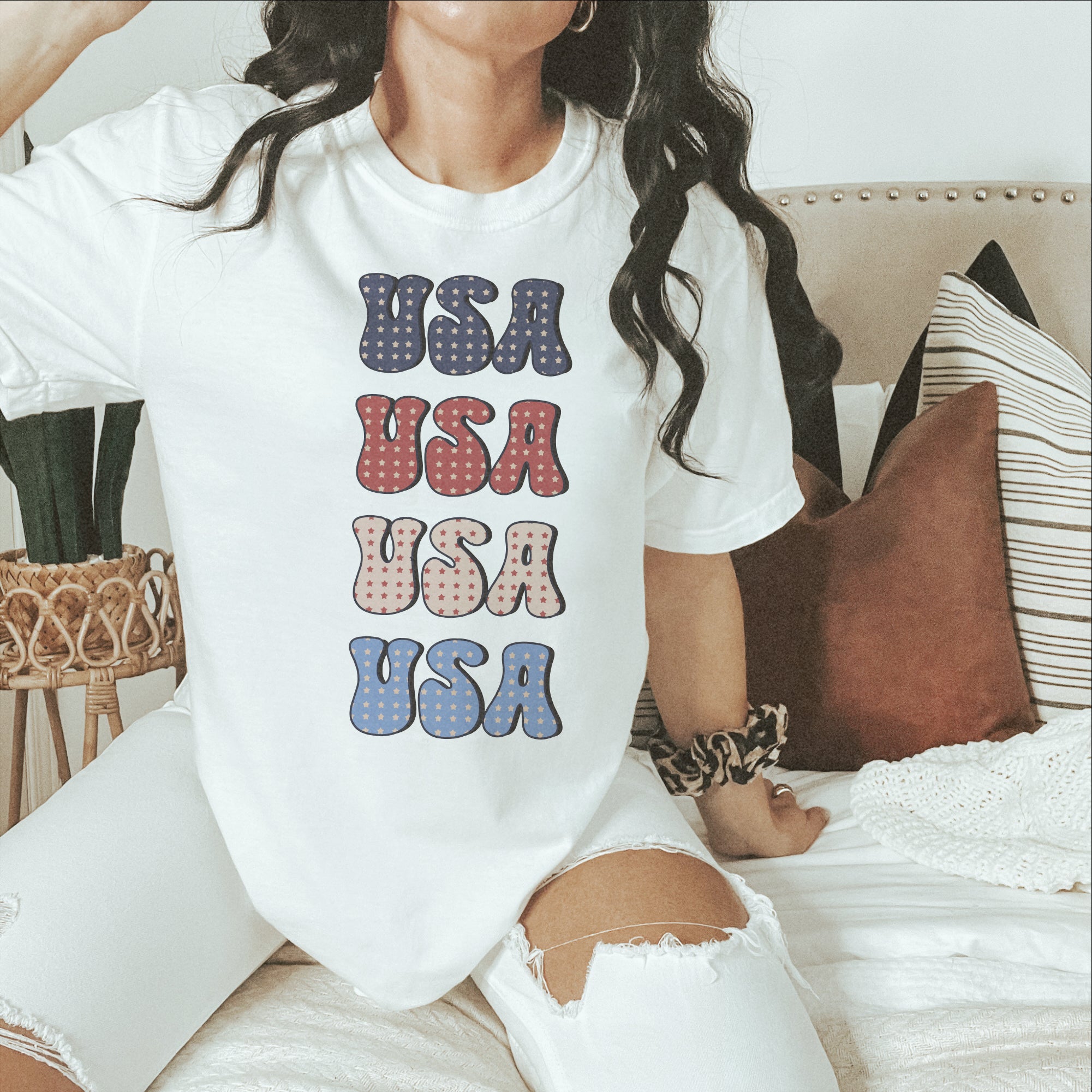 Celebrate the Fourth of July with our super cute USA T-Shirt. Made with comfortable and durable fabric and made to order!