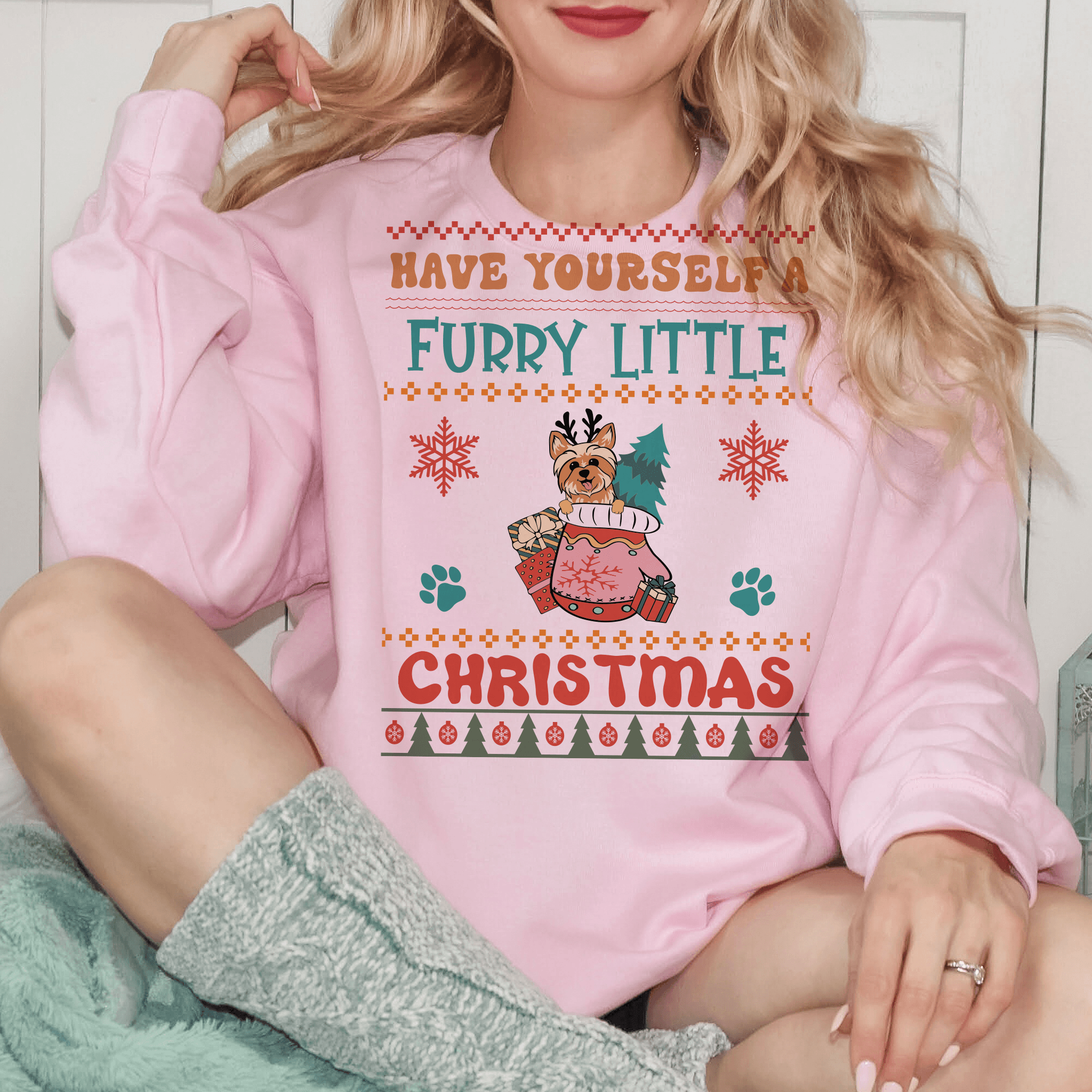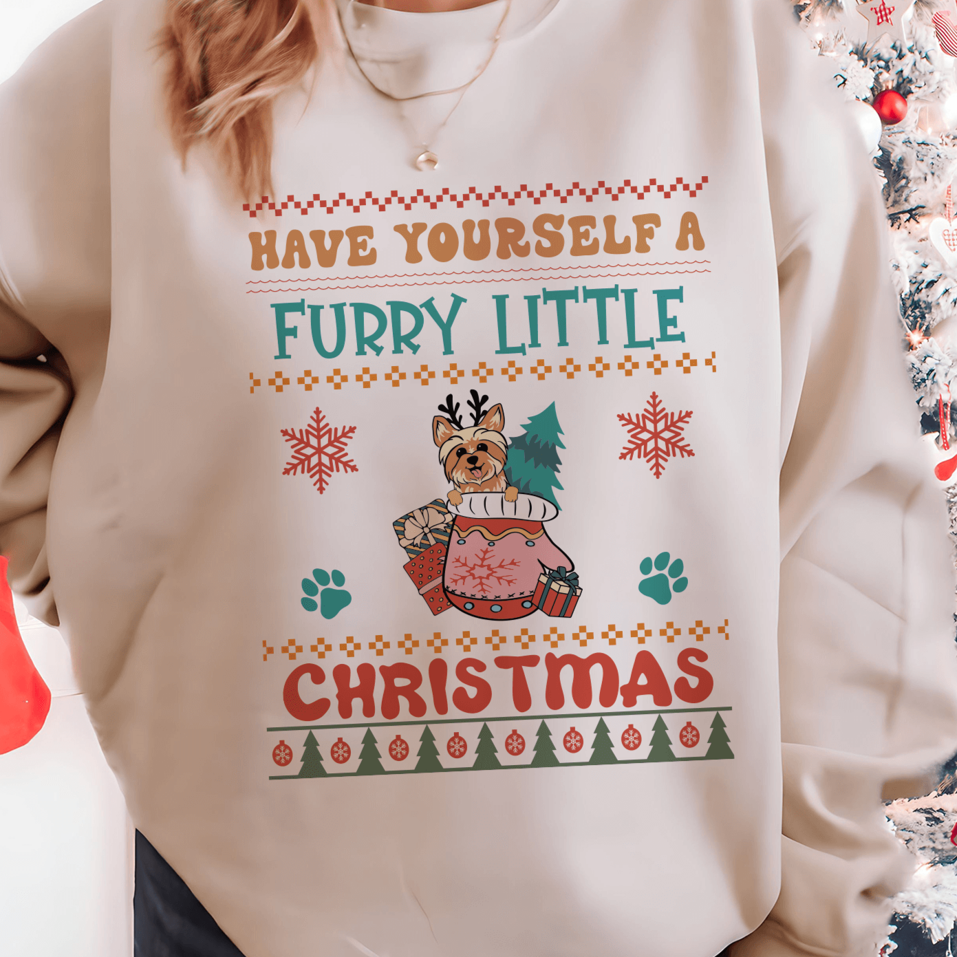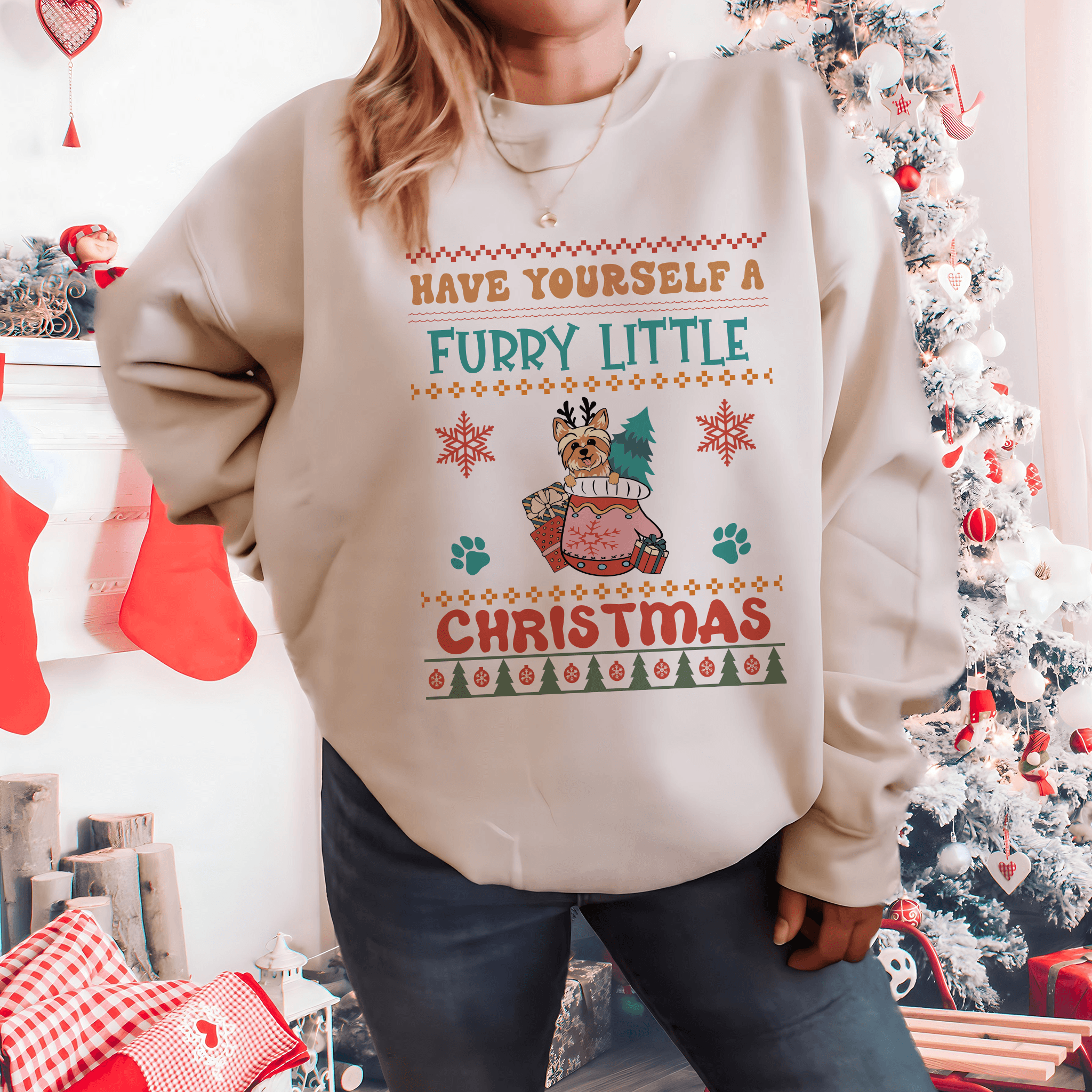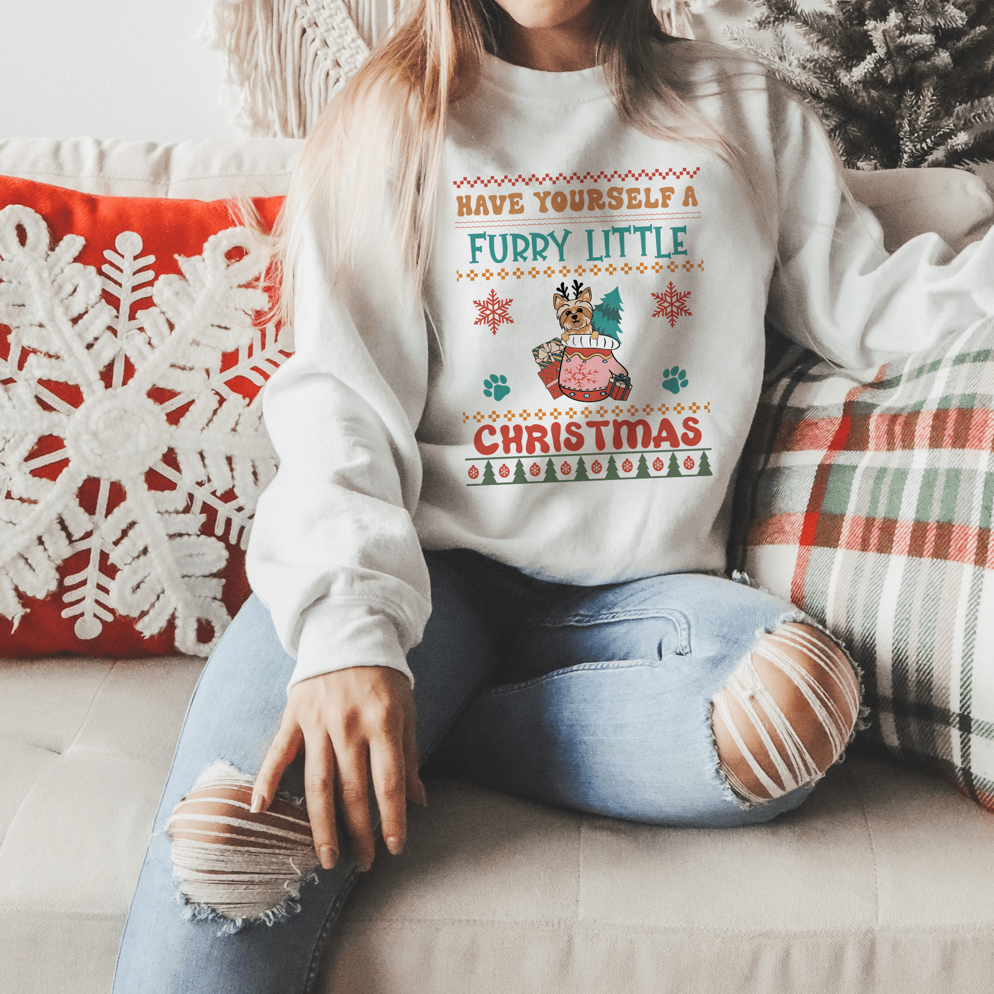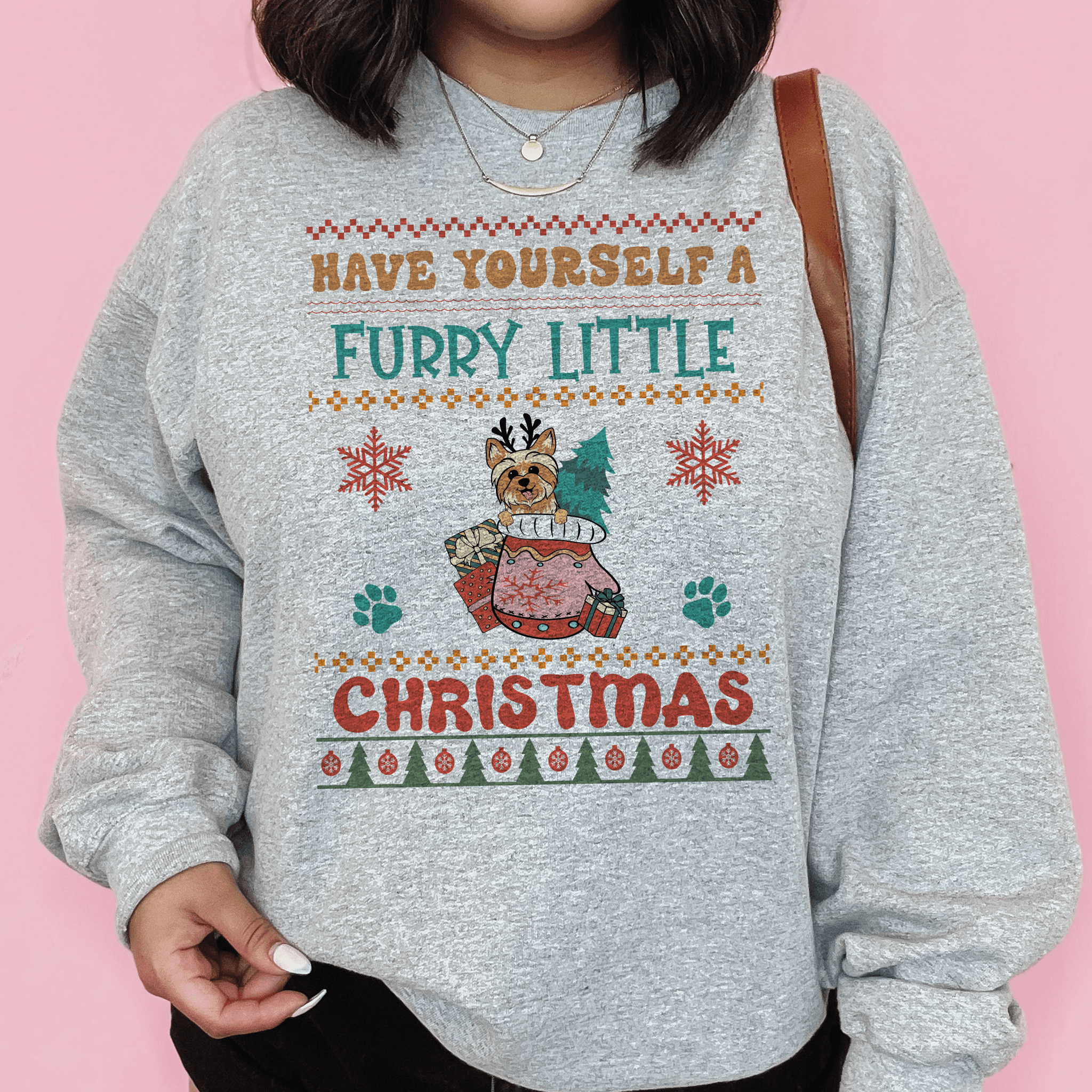 Embrace the festive spirit with our 'Yorkie Christmas' sweatshirt. Proudly brought to you by our small business, this snug sweatshirt is perfect for dog lovers and holiday enthusiasts alike. It showcases a delightful yorkie wrapped in Christmas joy. With a wide range of colors and sizes available, you're sure to find your ideal match on our website. Add a touch of whimsical warmth to your winter wardrobe with a sweatshirt that celebrates the season!