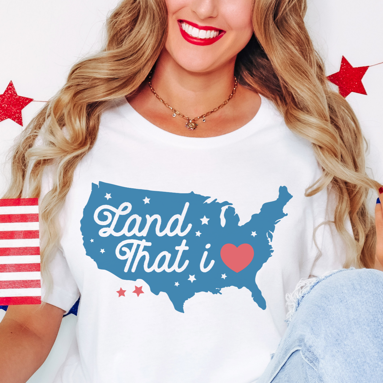 Get ready for Fourth of July with our Fourth of July Land That I Love America tee! Sublimated on a Gildan T Shirt. Please reach out if you would like to have it on a Bella Canvas Shirt instead.
