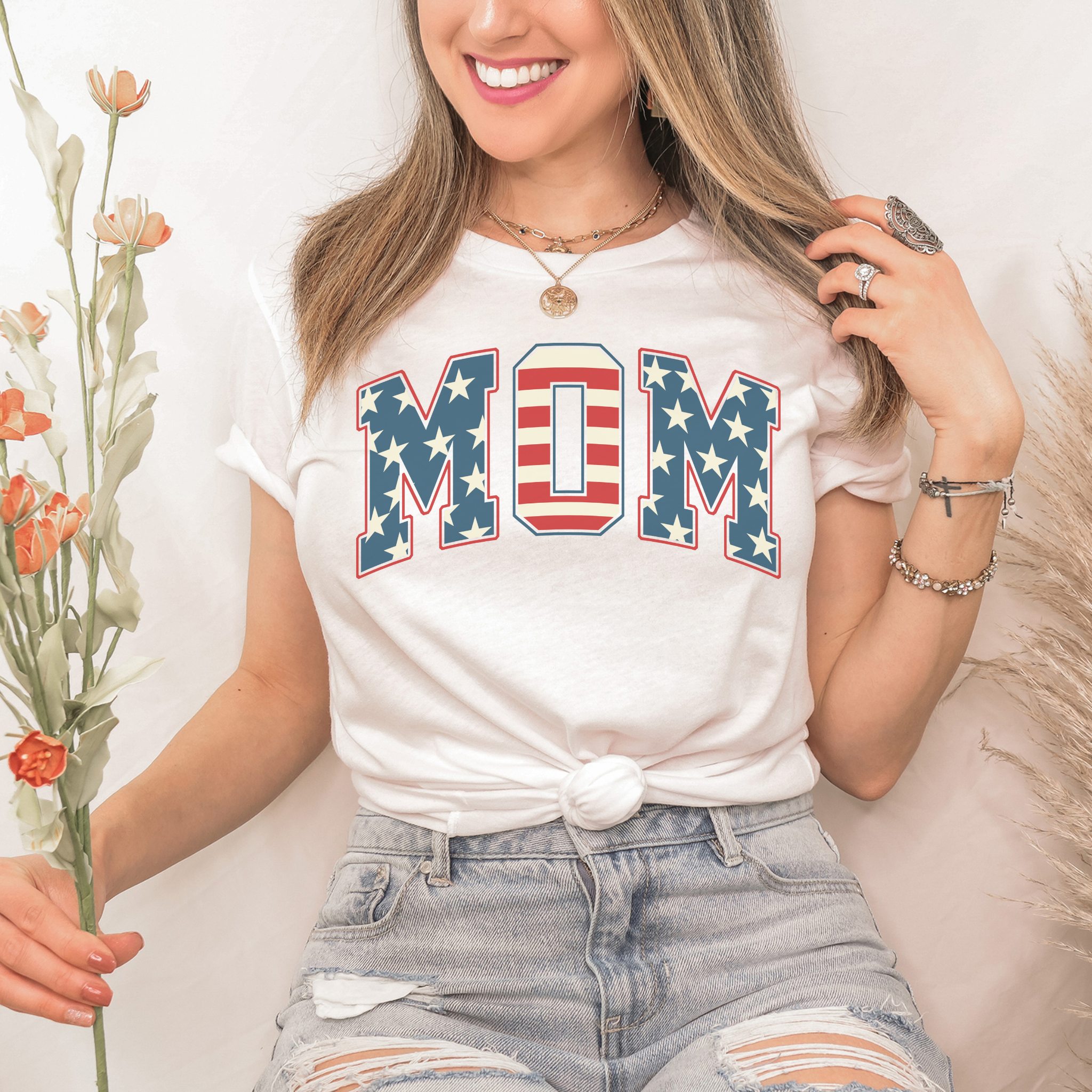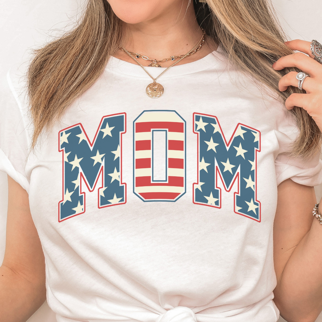 Get ready for Fourth of July with our Fourth of July Stars and Stripes Mom tee! Sublimated on a Gildan T Shirt. Please reach out if you would like to have it on a Bella Canvas Shirt instead.