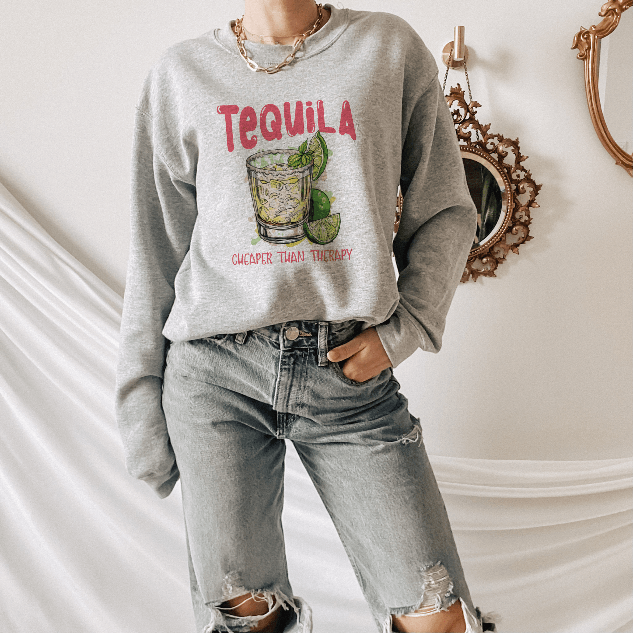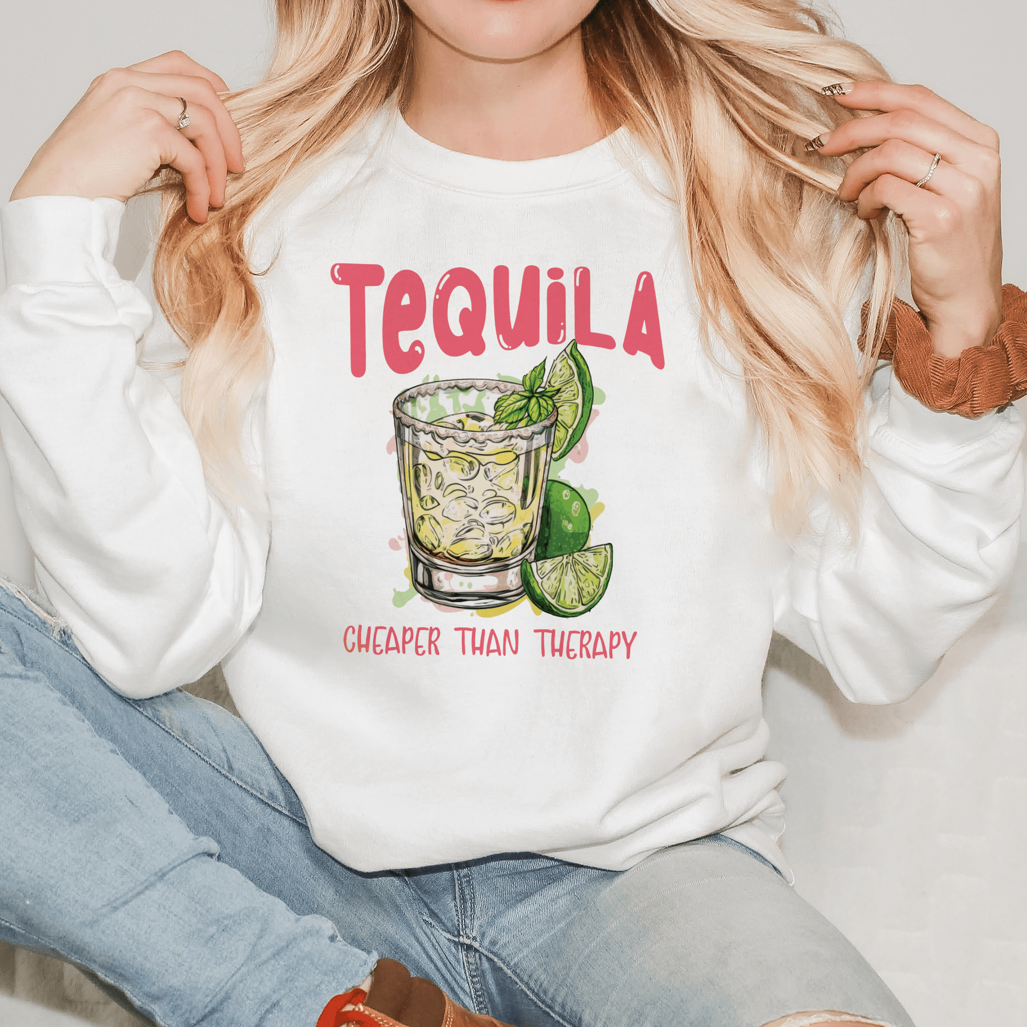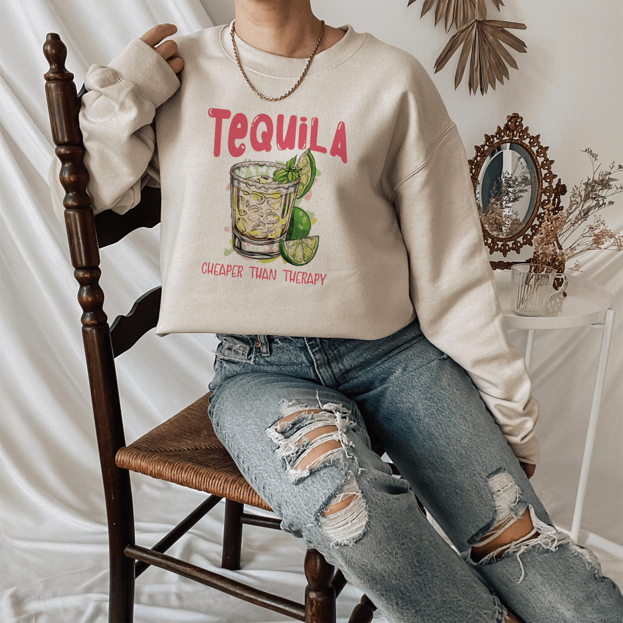 Humorous 'Tequila: Cheaper Than Therapy' Sweatshirt