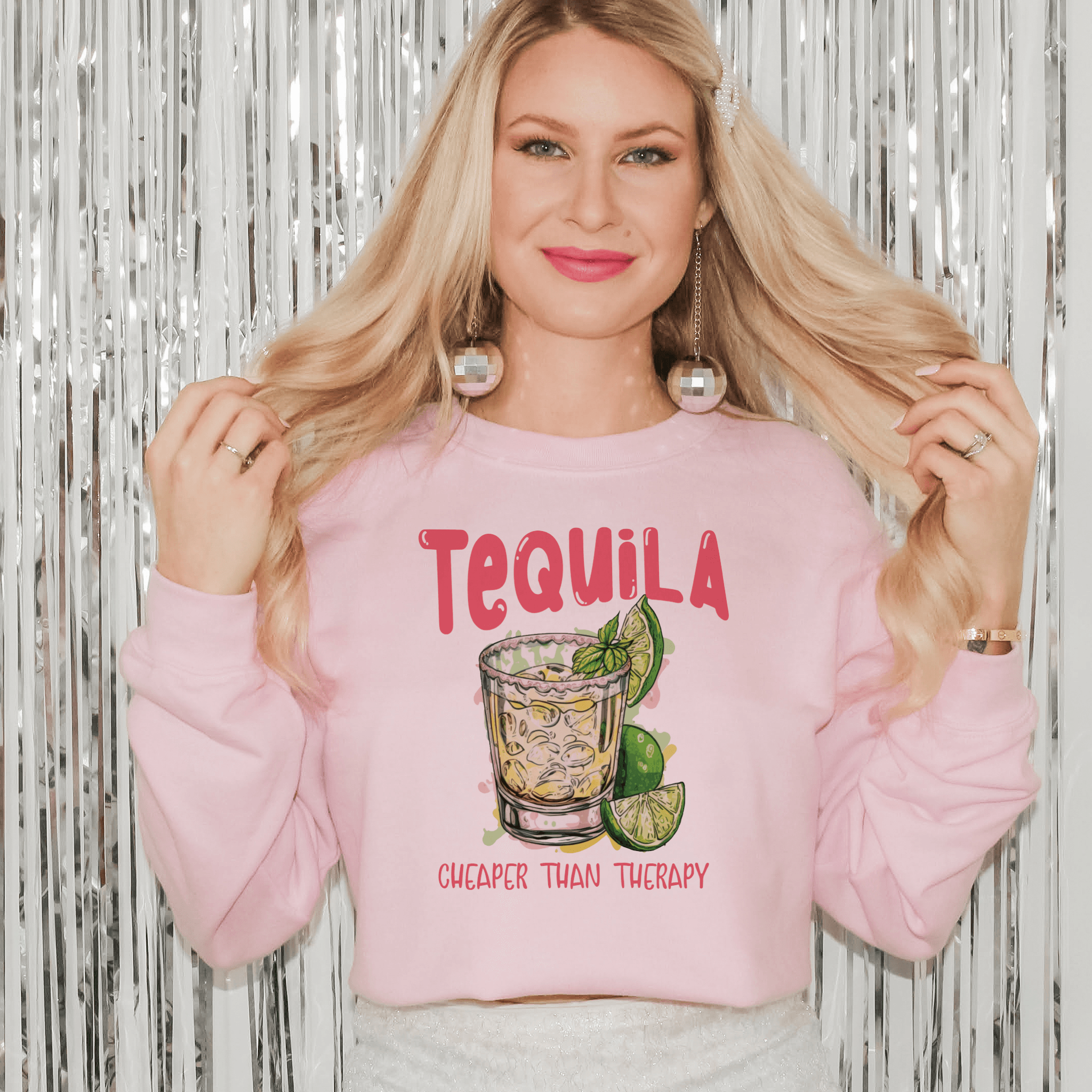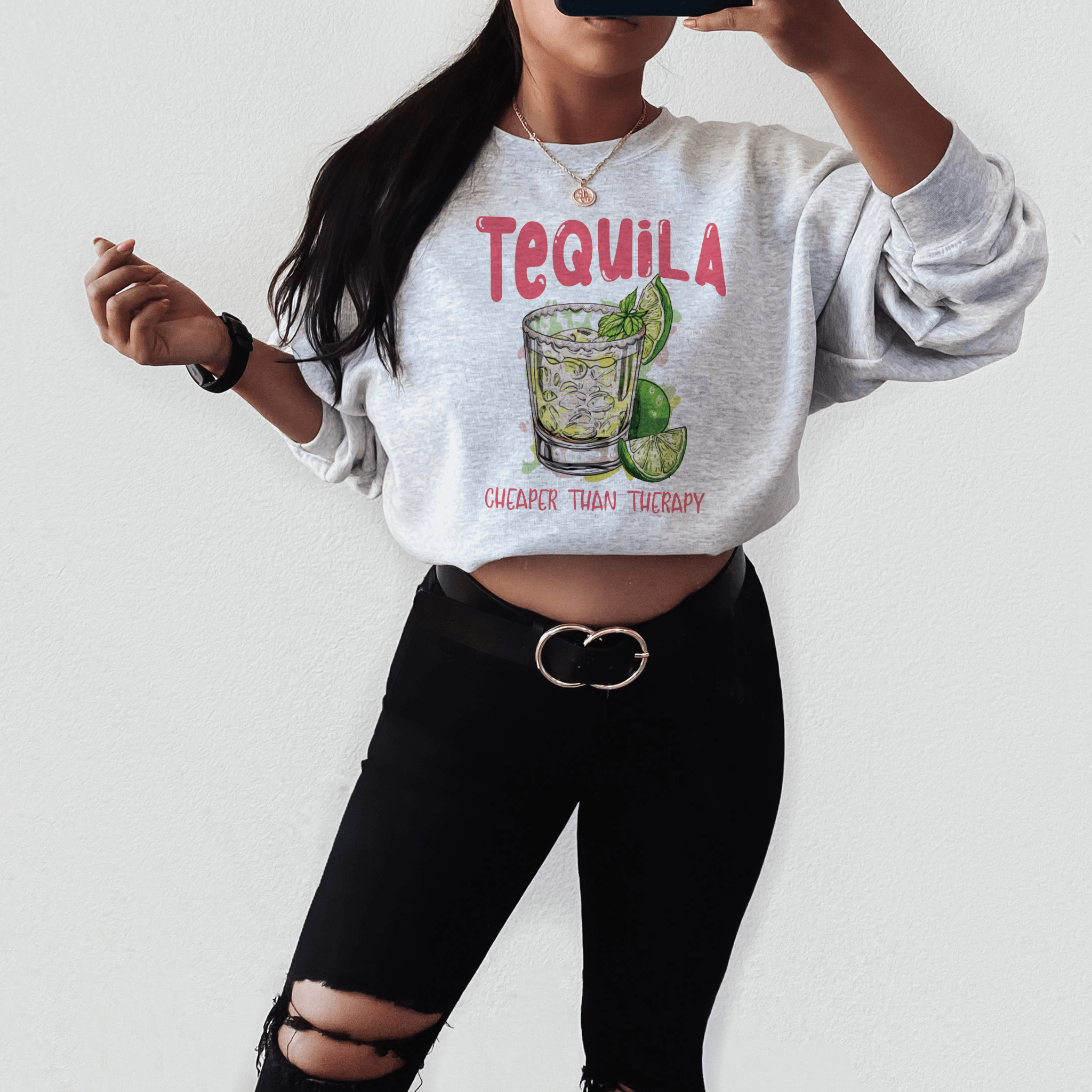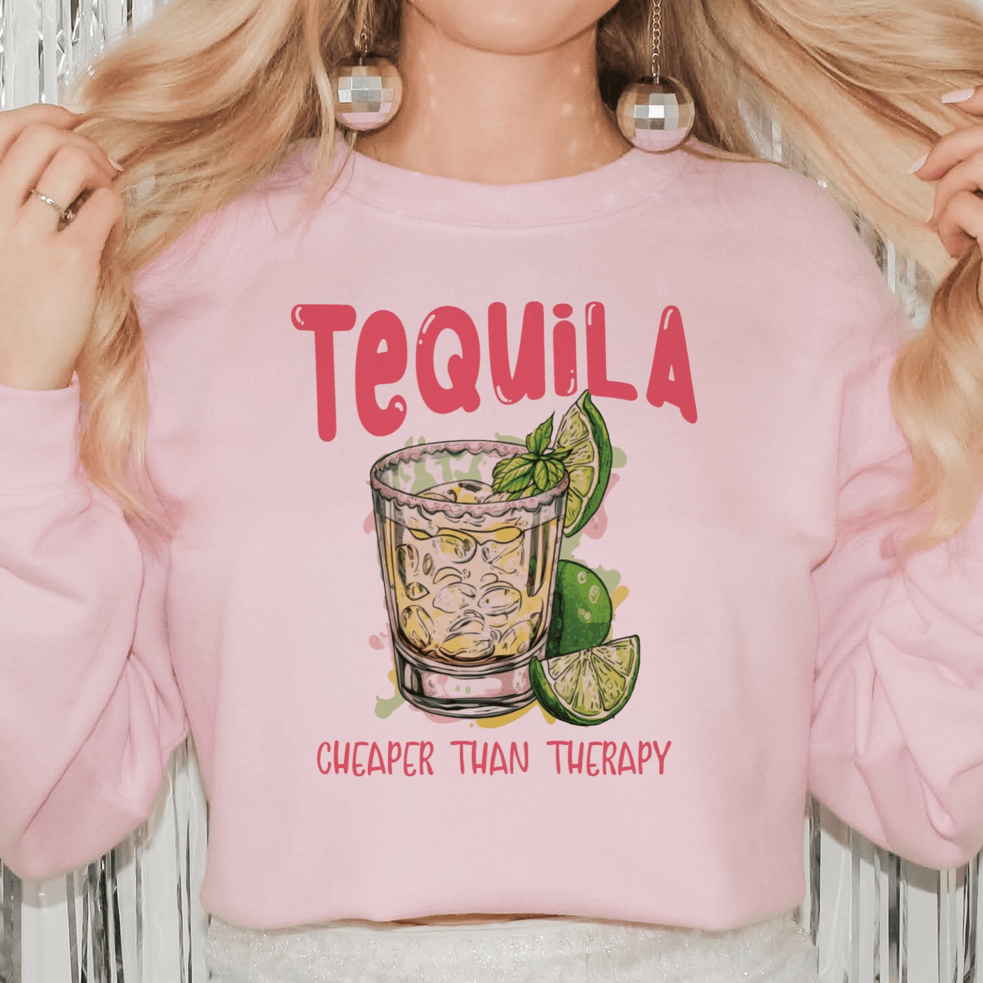 Humorous 'Tequila: Cheaper Than Therapy' Sweatshirt
