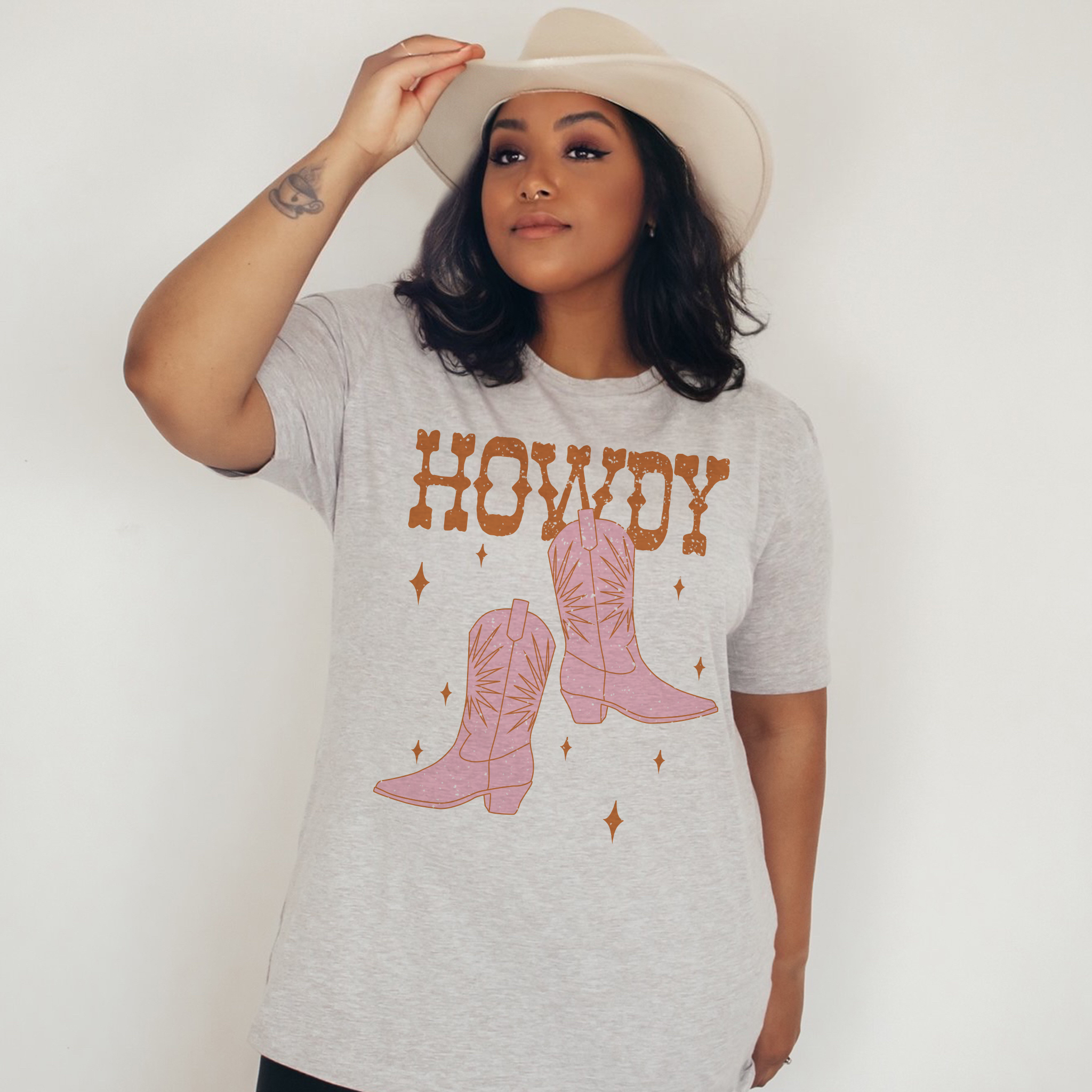 How cute is our western howdy t shirt?! Perfect dressed up or down. Size up for an oversized fit. Hand made to order!