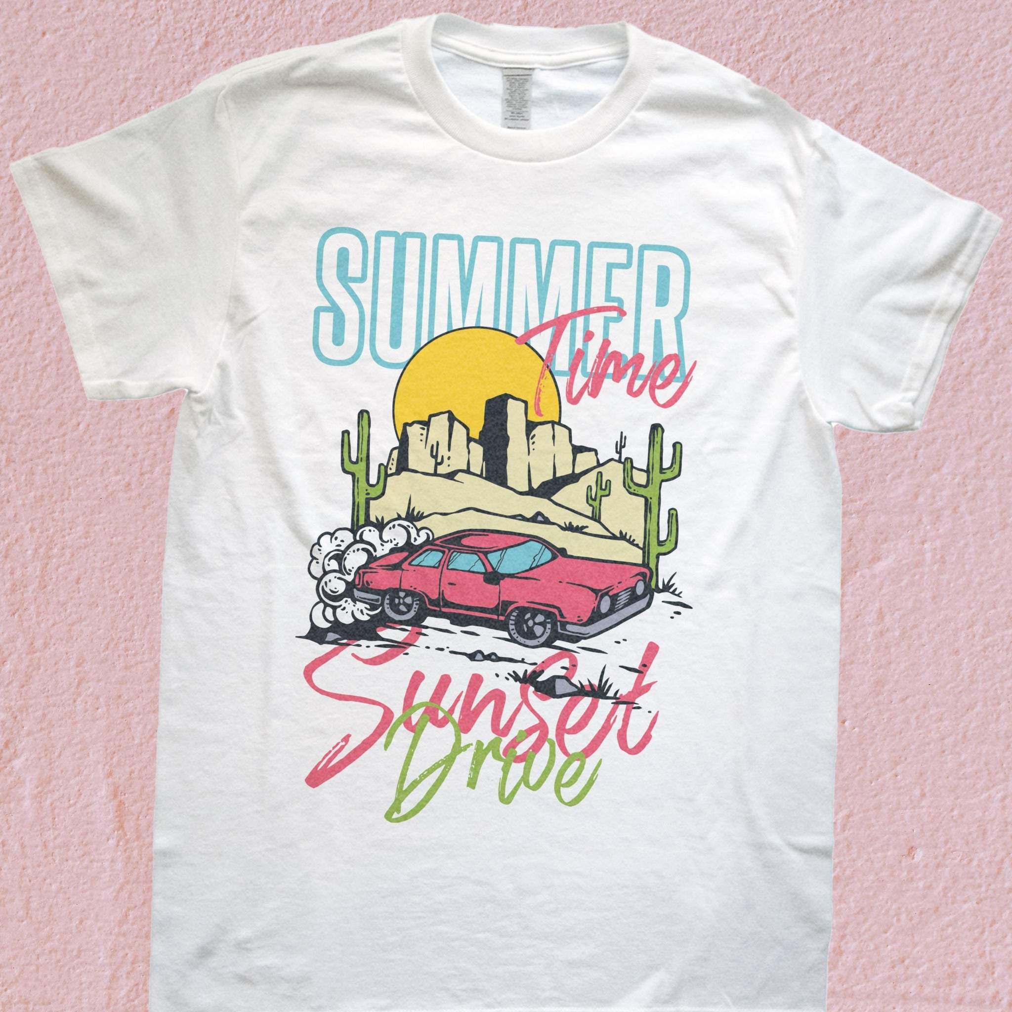 Get ready for summer with out Summer Time Sunset Drive tee!