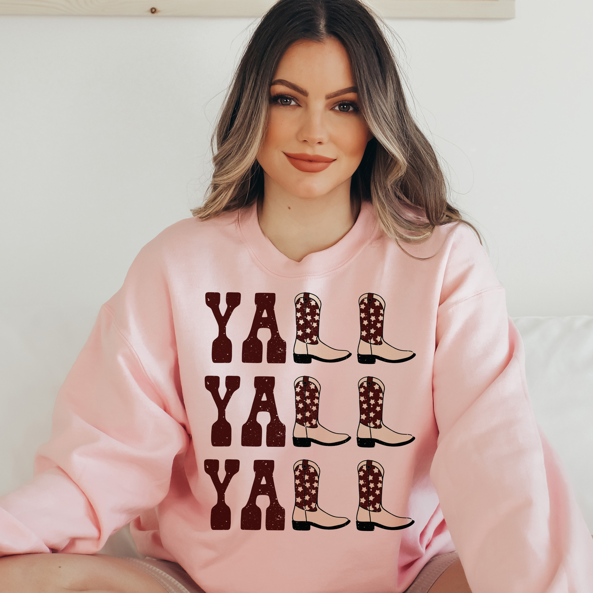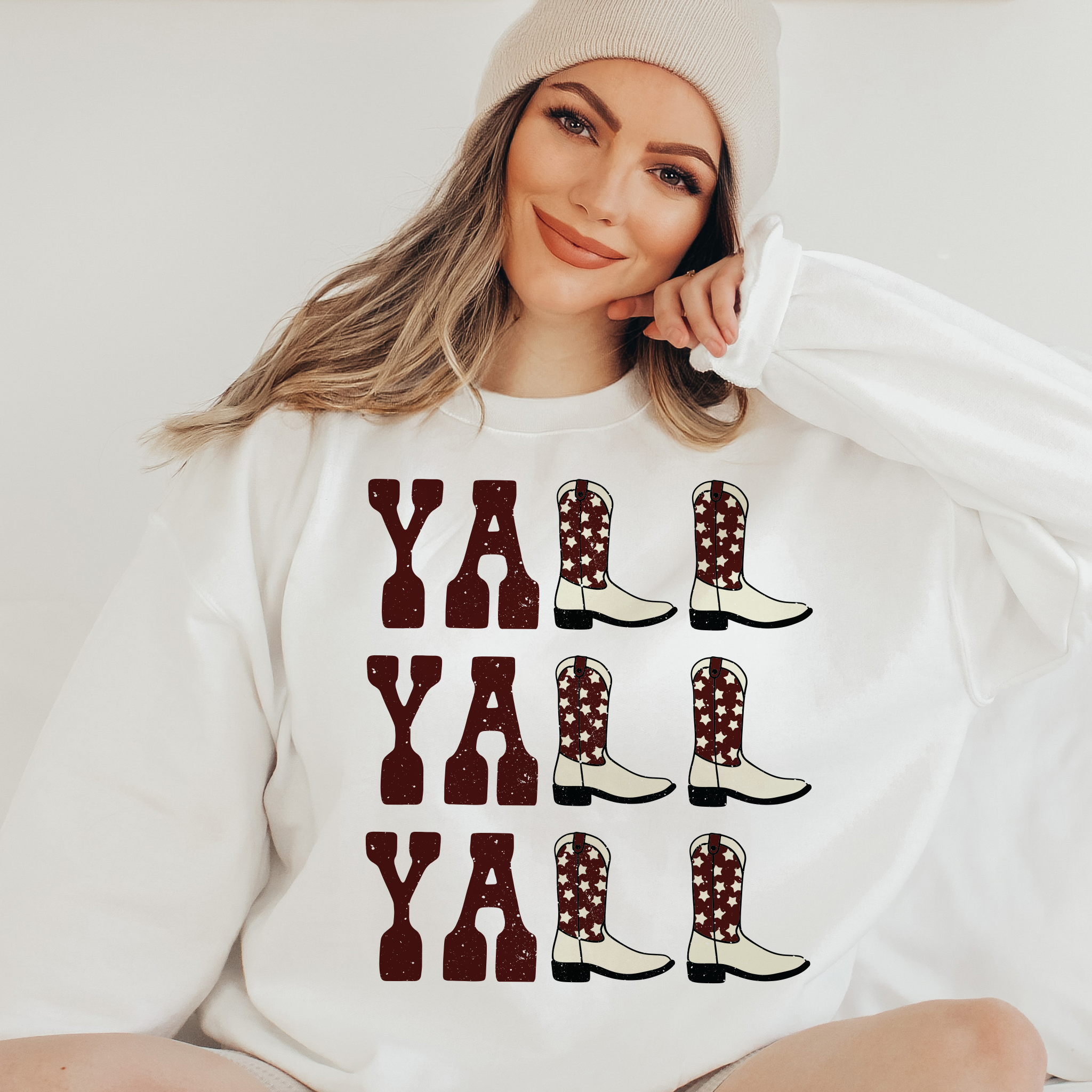 Yall Yall Yall Maroon and Cream Cowboy Cowgirl Western Boots sweatshirt.