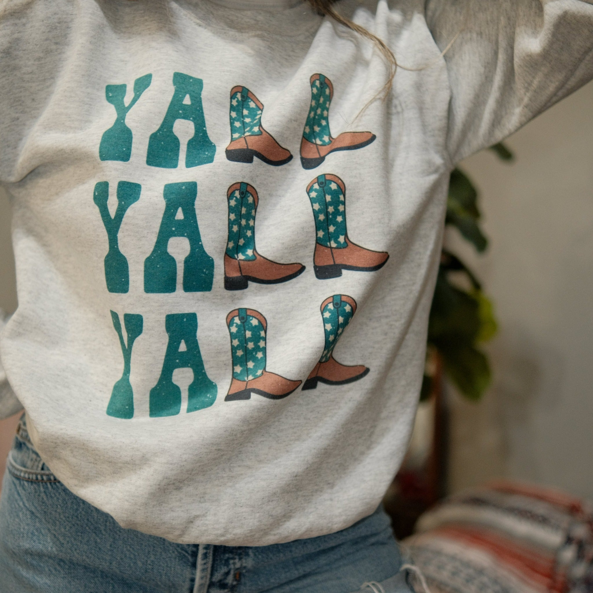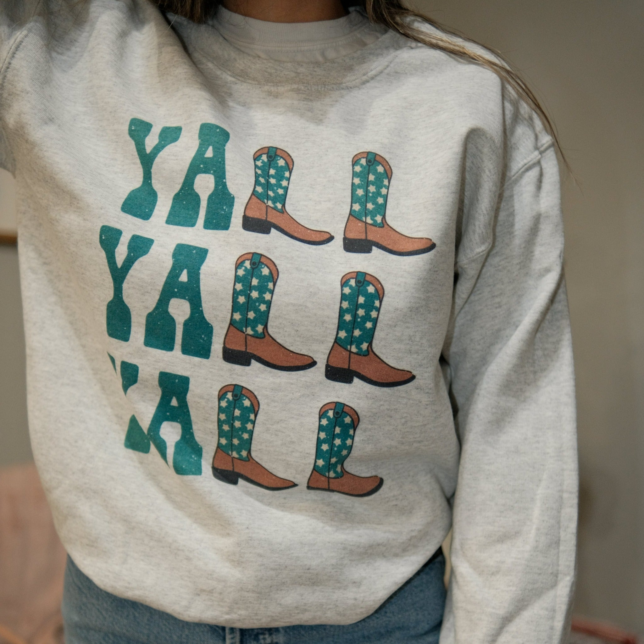 Yall Yall Yall Teal Cowboy Cowgirl Western Boots Sweatshirt