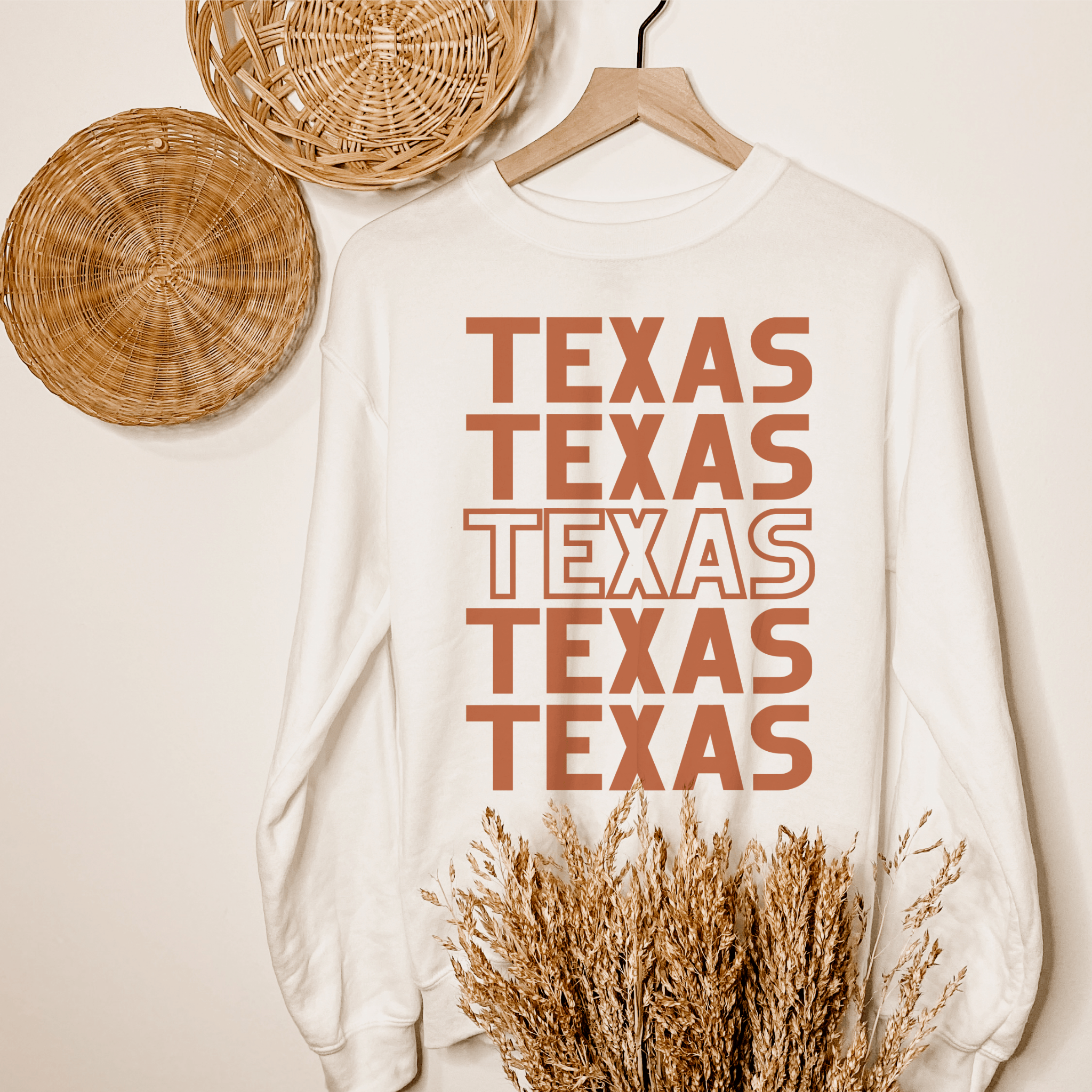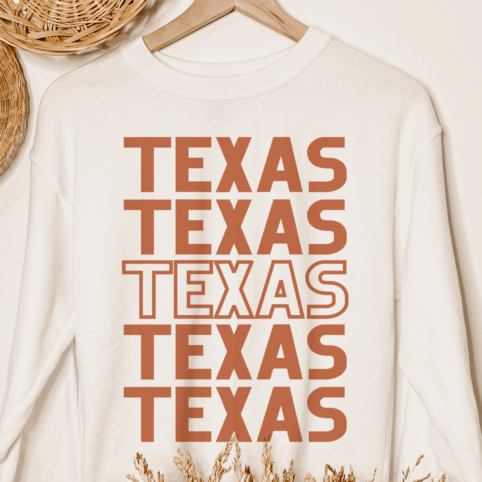 Get ready for fall and cooler weather with our Texas Solid/Outline sweatshirt.