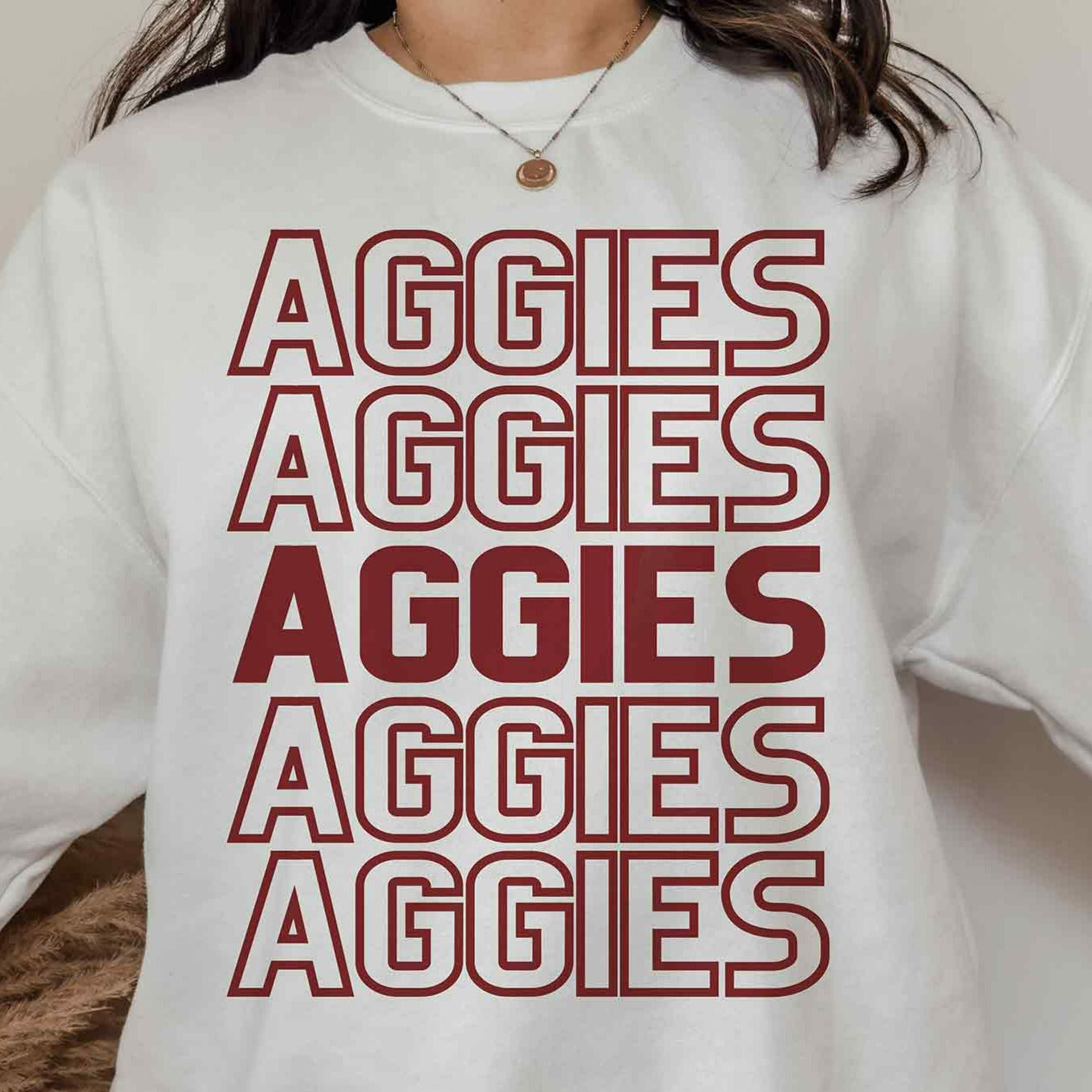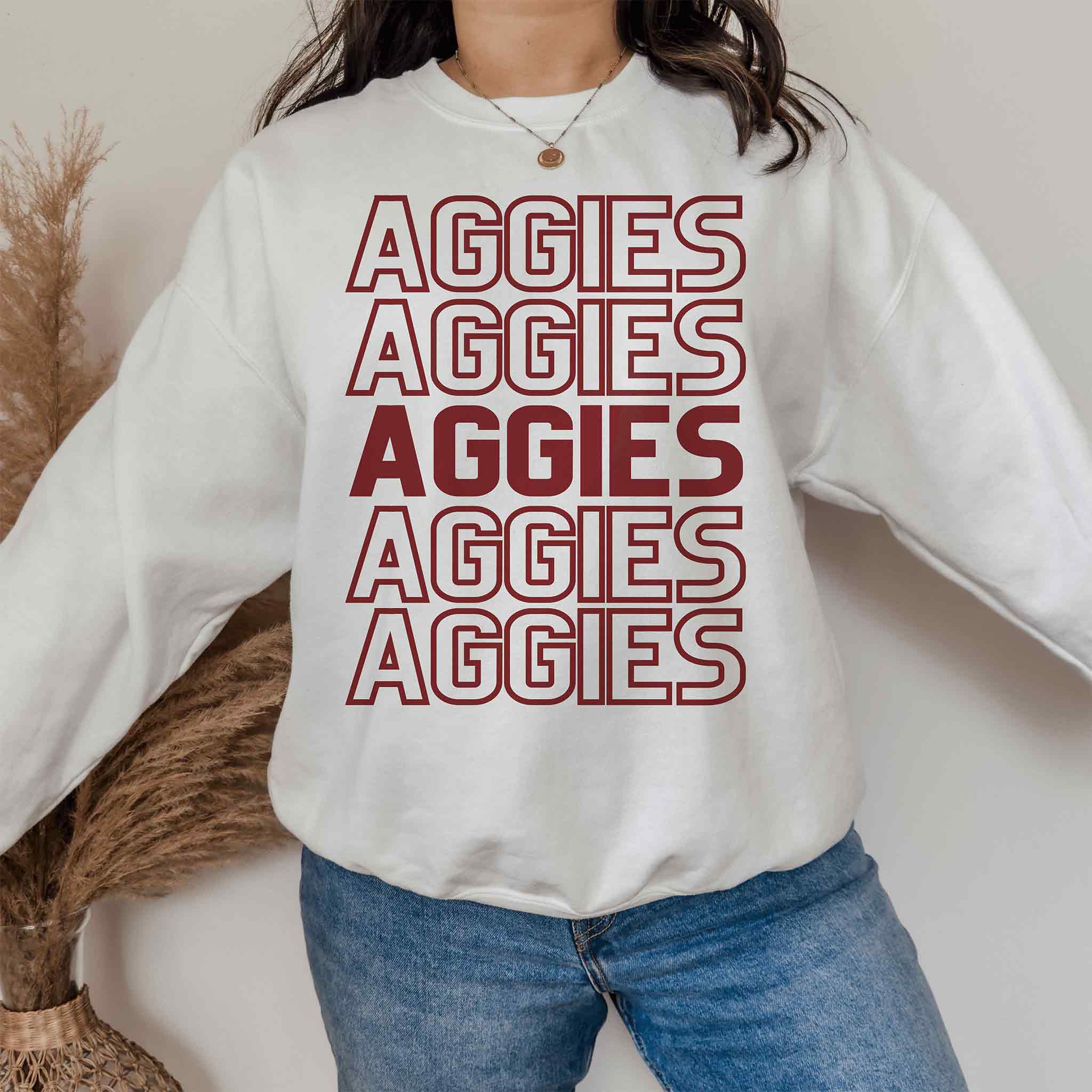 Get ready for fall and cooler weather with our Aggies Outline sweatshirt.