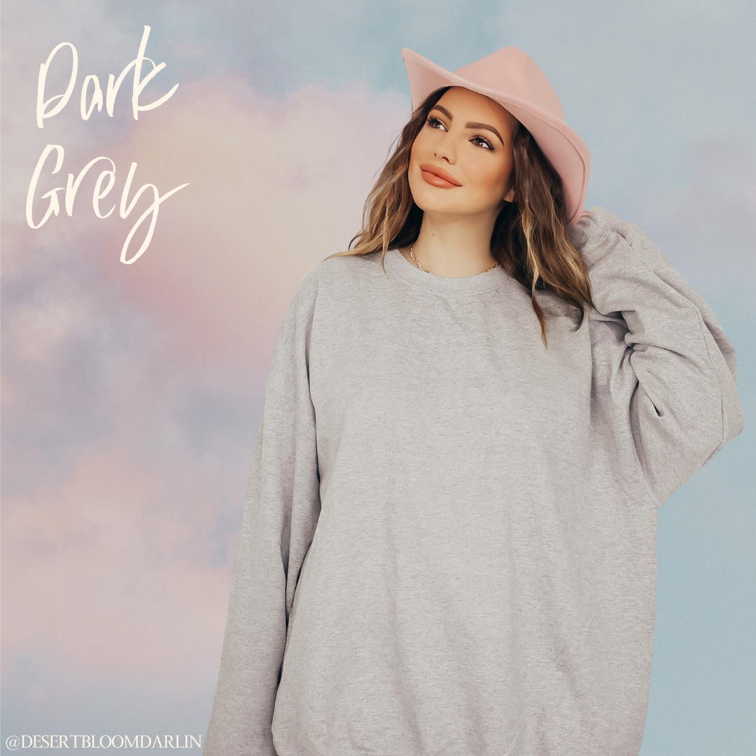 Our sweatshirts and tees are true to size. For a more oversized fit, we recommend sizing up.