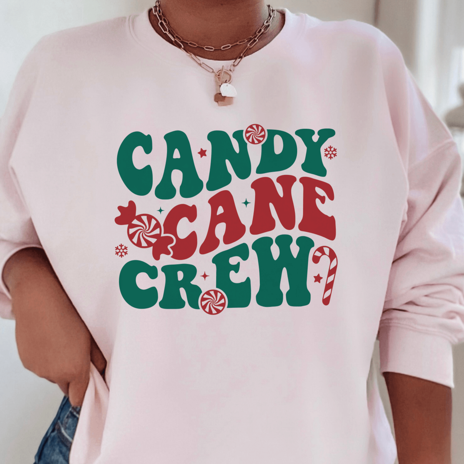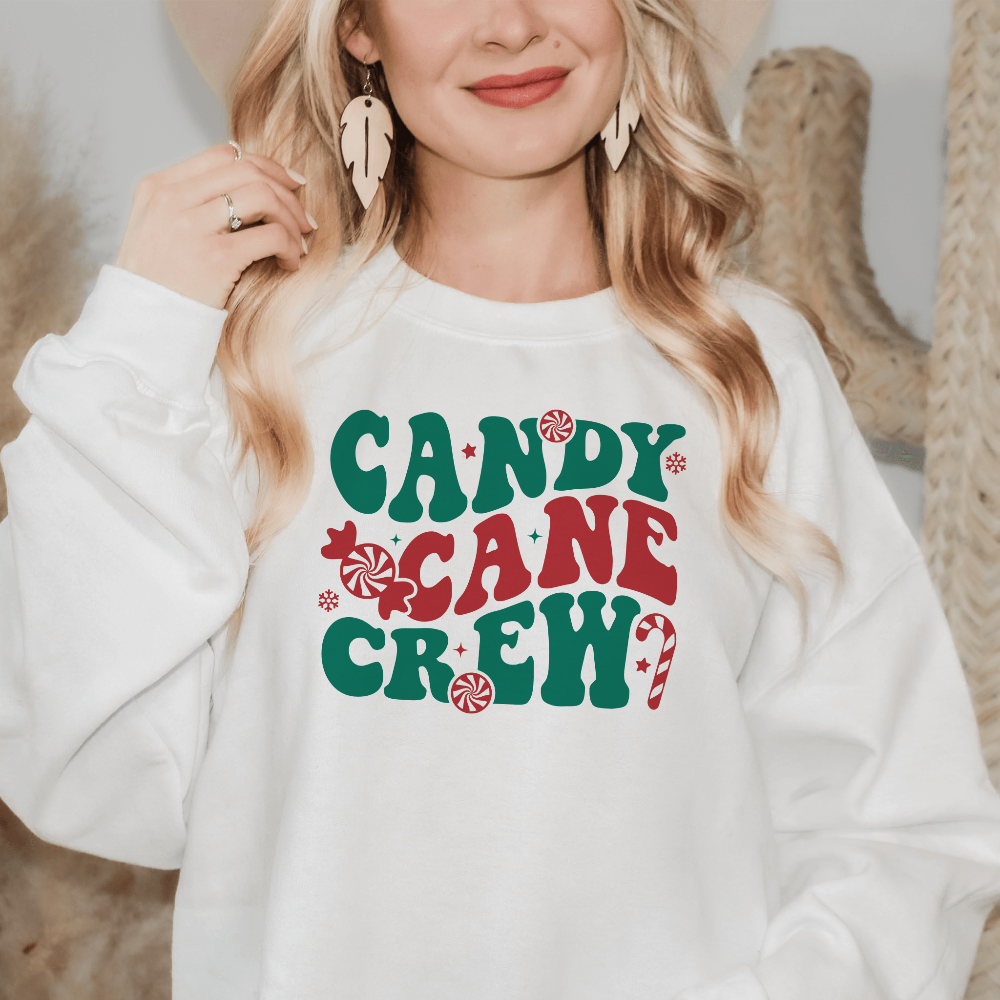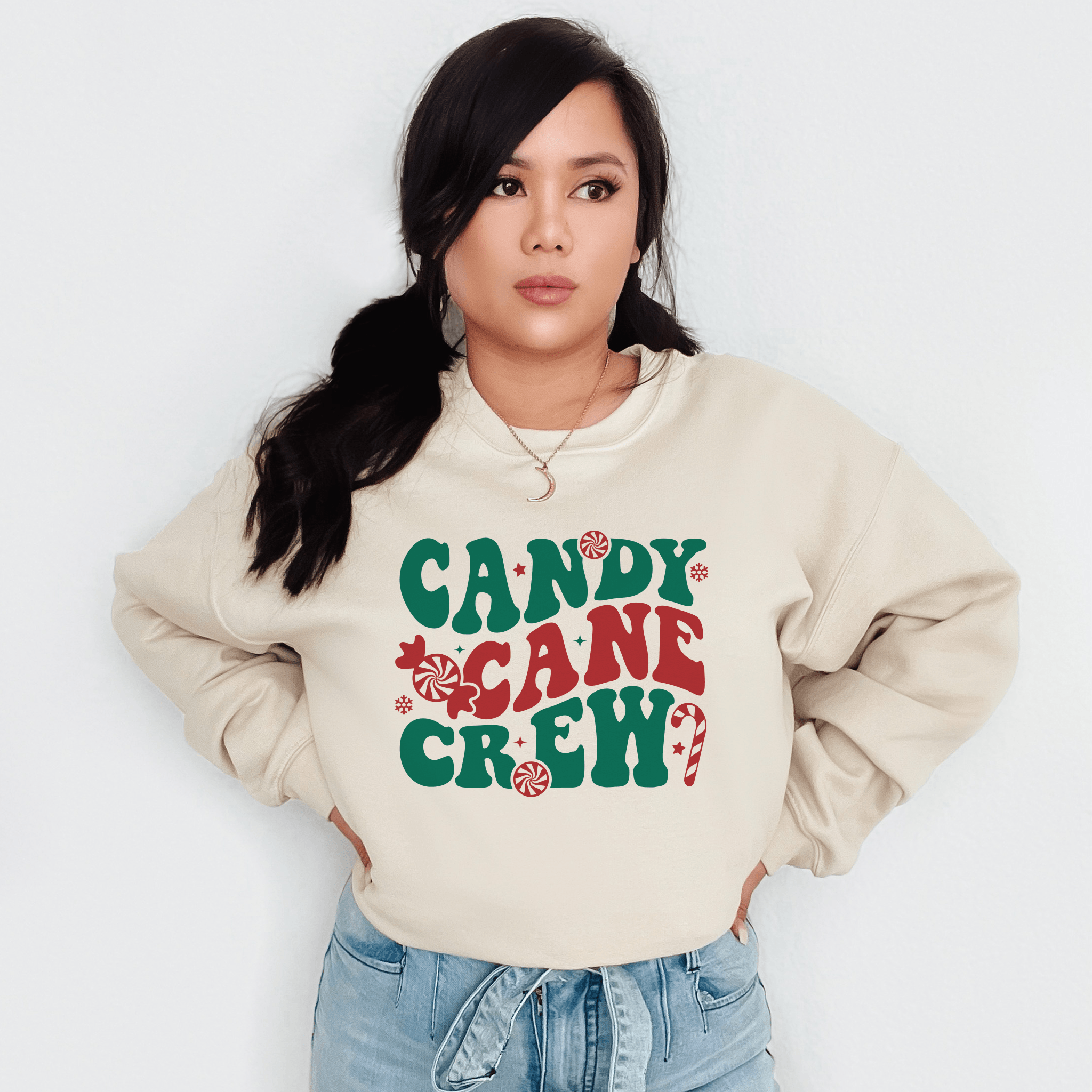 Join the 'Candy Cane Crew' with our sweetly styled holiday sweatshirt! This delightful design is a small business specialty, featuring festive lettering that captures the spirit of the season. Perfect for holiday gatherings or cozy nights in, it's crafted for comfort and cheer. Available in a variety of colors and sizes to suit your holiday mood. Find this treat and more on our website, and make your holidays a little sweeter!