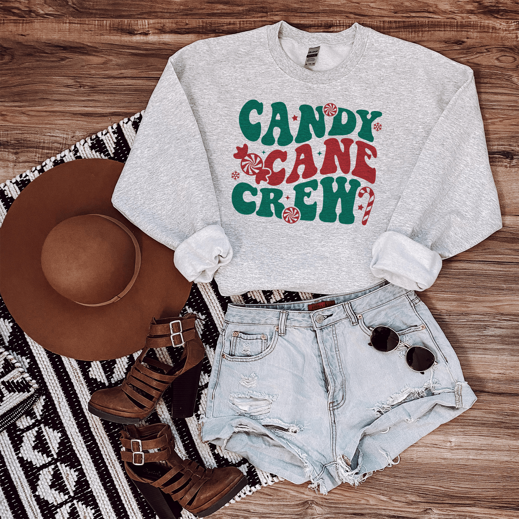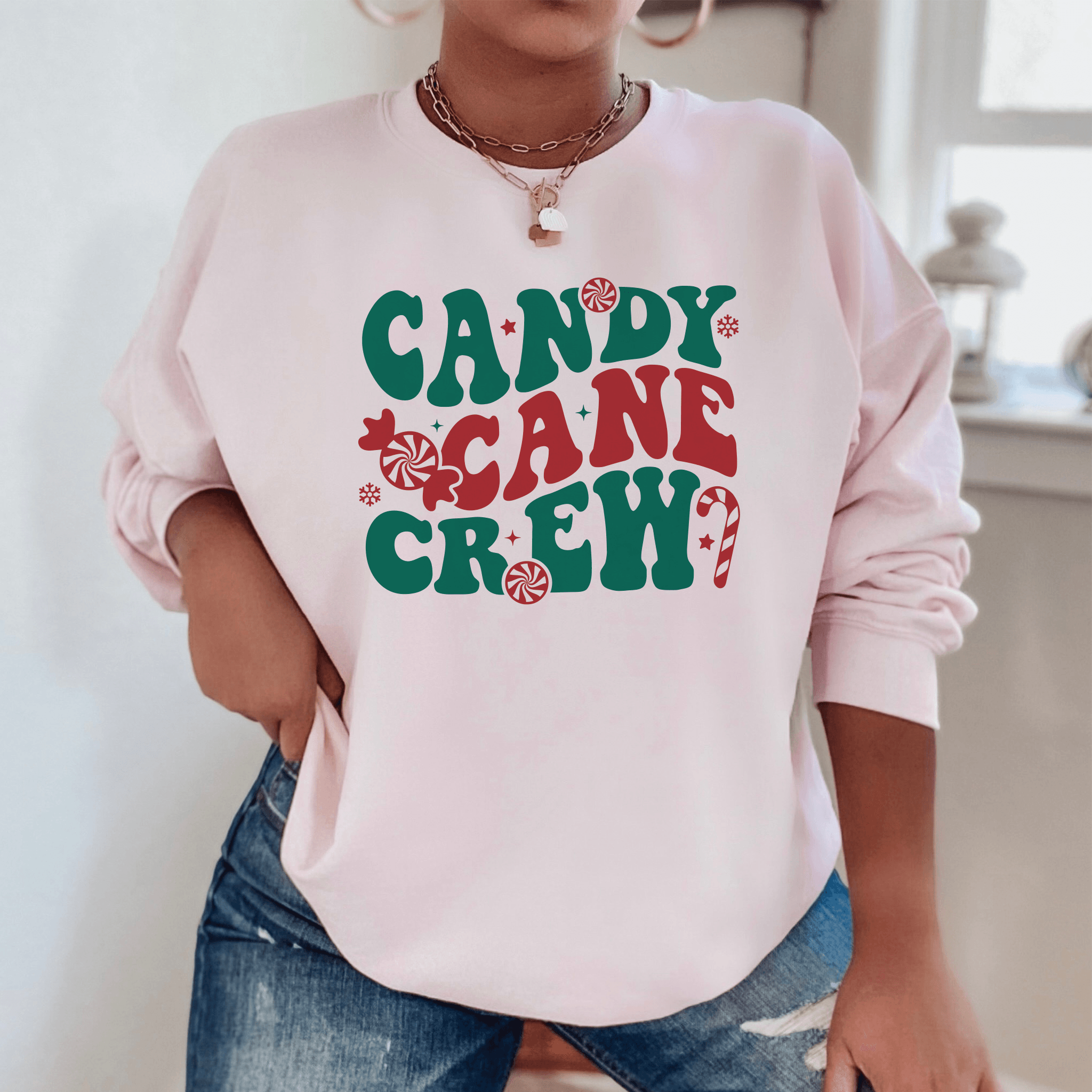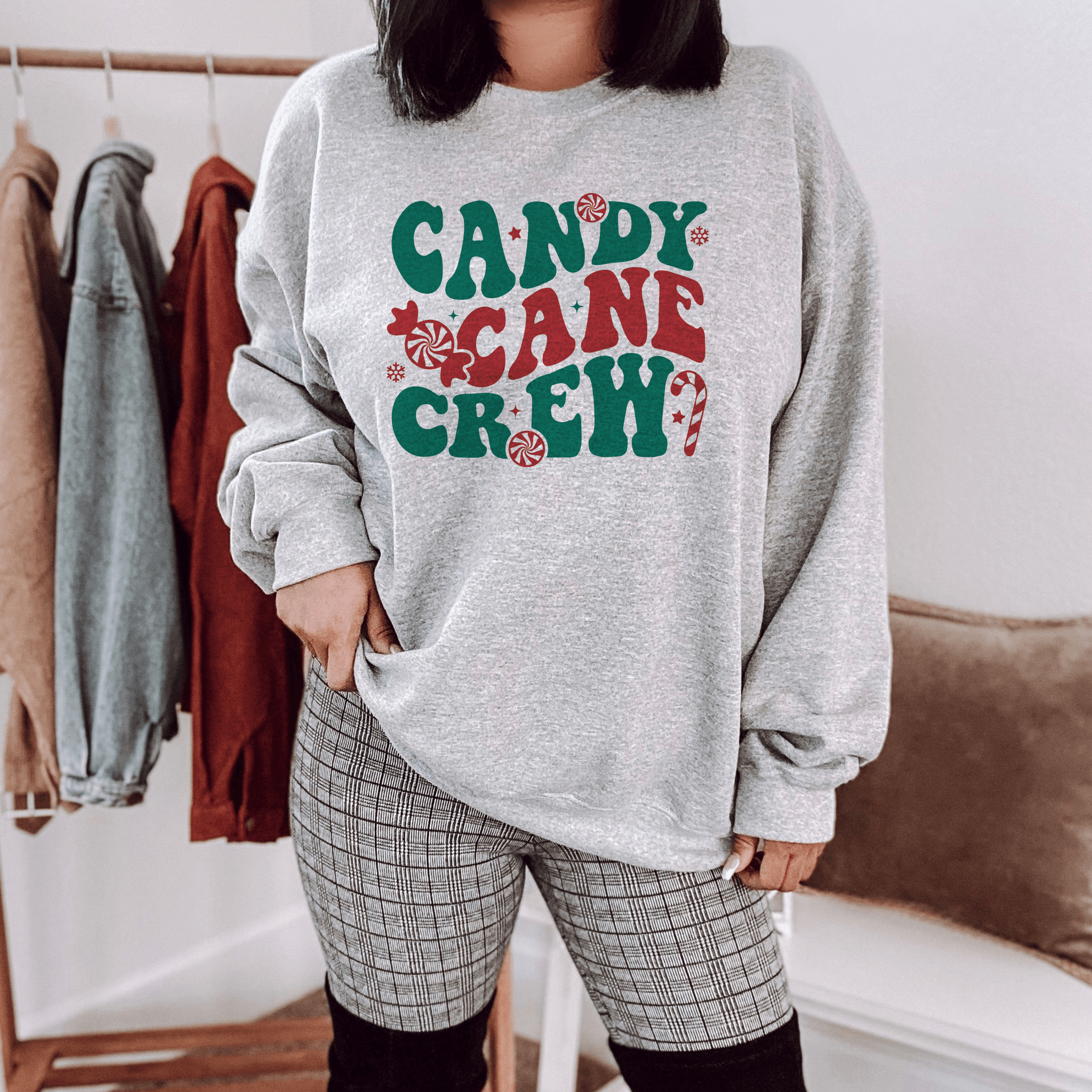 Join the 'Candy Cane Crew' with our sweetly styled holiday sweatshirt! This delightful design is a small business specialty, featuring festive lettering that captures the spirit of the season. Perfect for holiday gatherings or cozy nights in, it's crafted for comfort and cheer. Available in a variety of colors and sizes to suit your holiday mood. Find this treat and more on our website, and make your holidays a little sweeter!