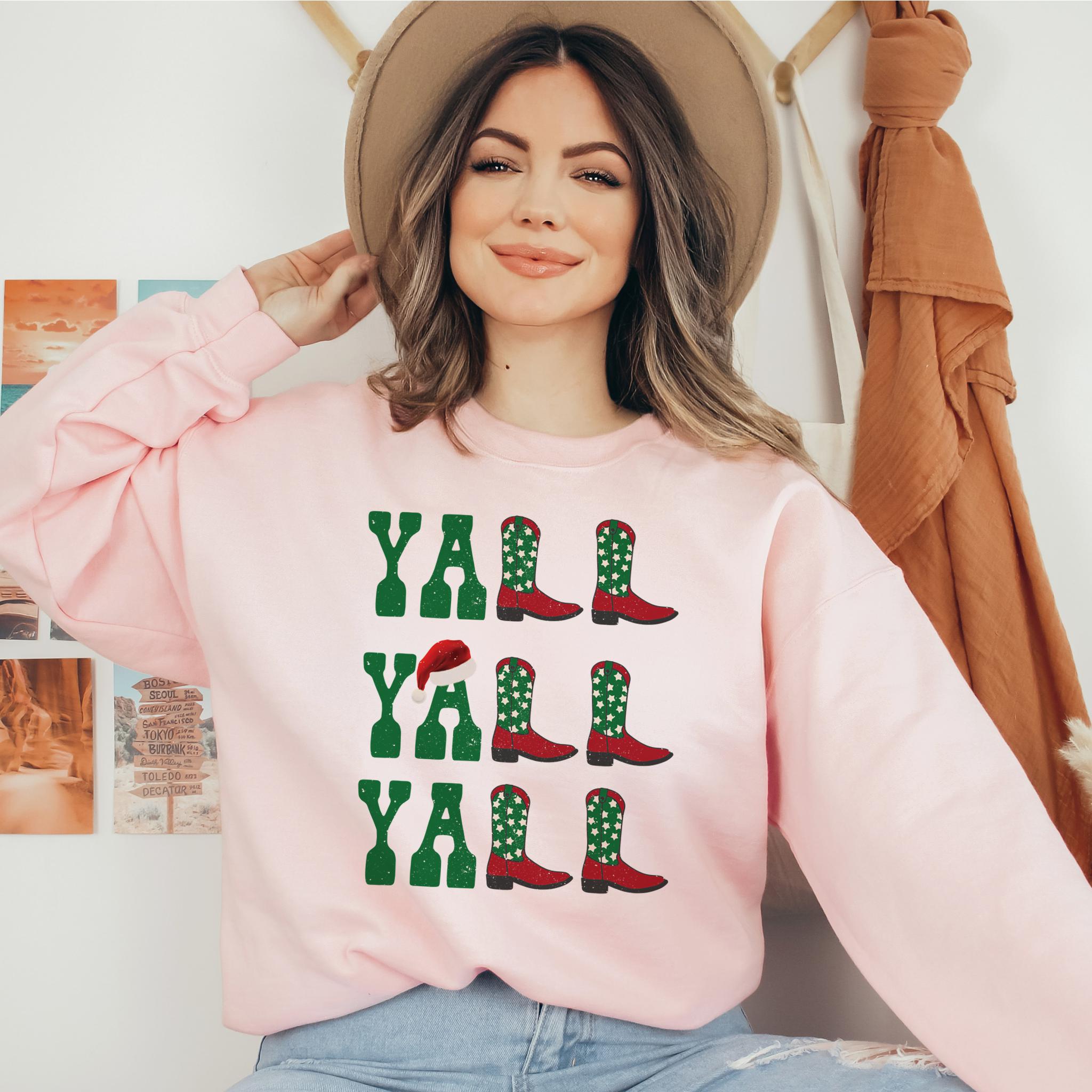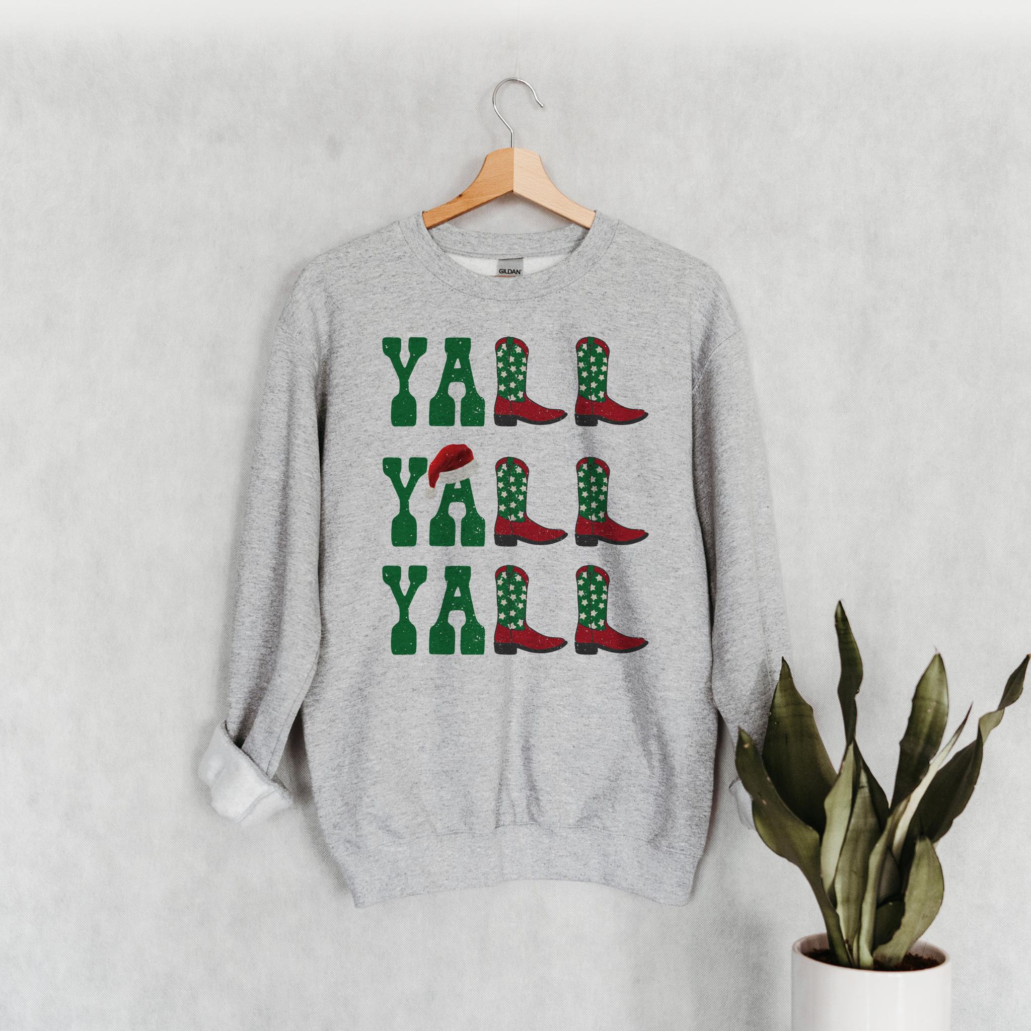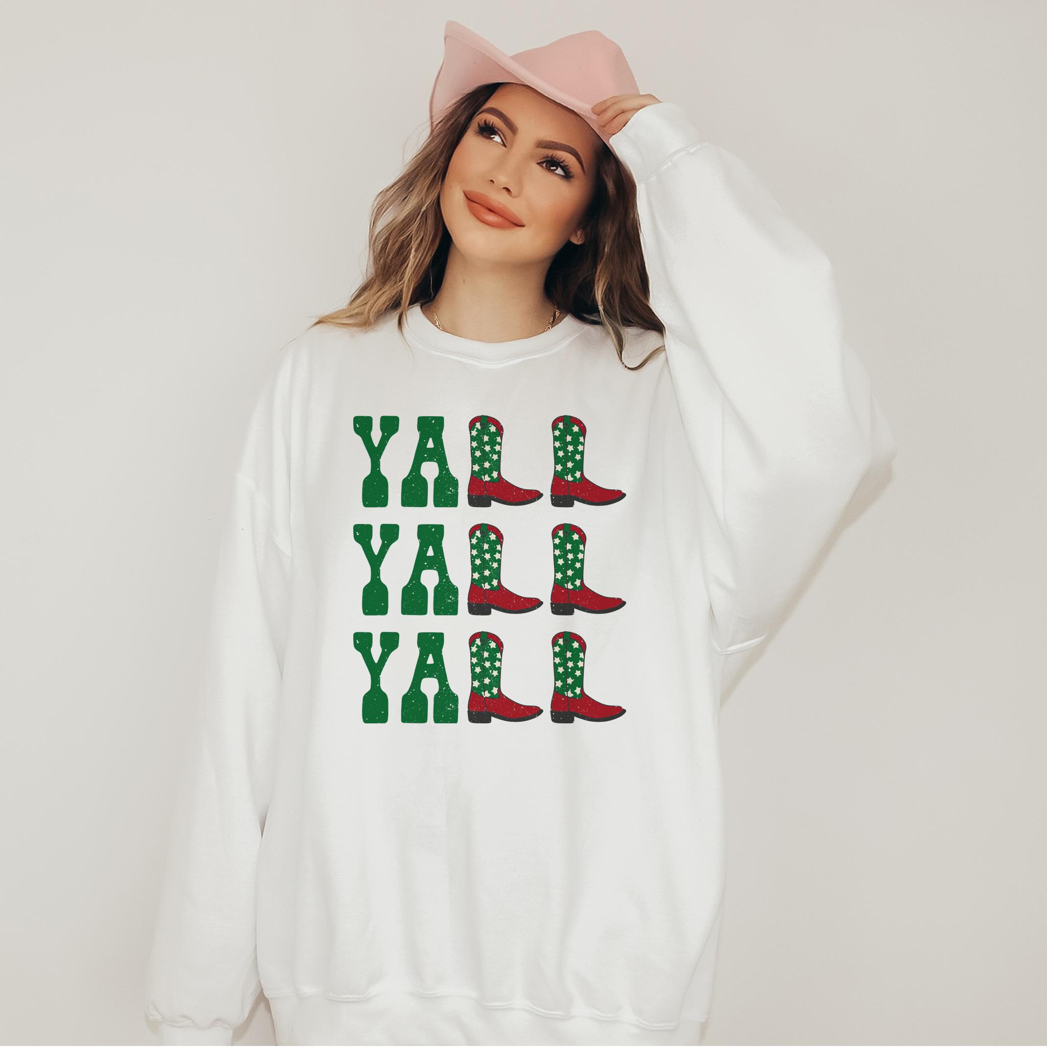 Christmas Yall Yall Yall Cowboy Cowgirl Western Boots Sweatshirt