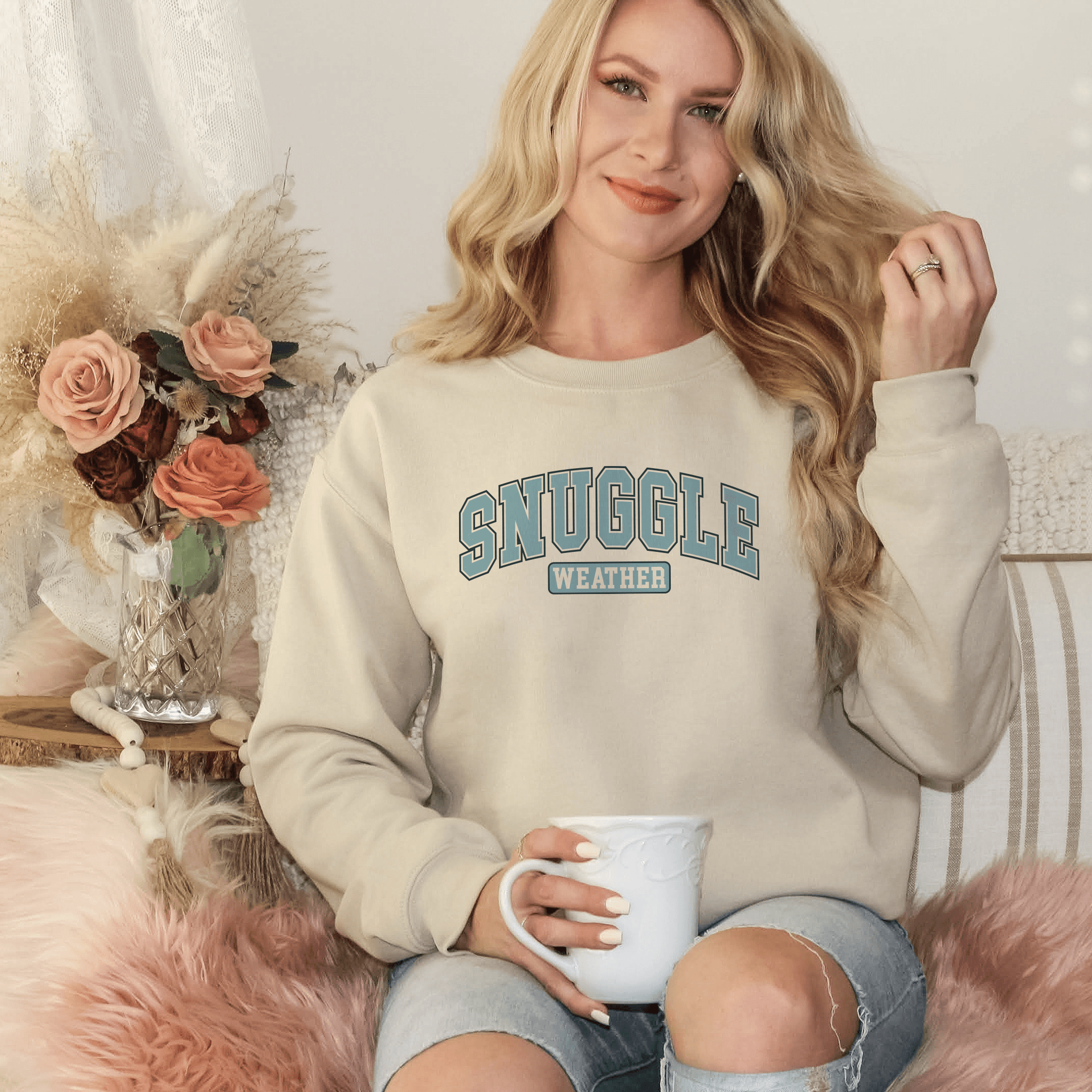 Get ready for the chill with our 'Cozy 'Snuggle Weather' Sweatshirt'! Perfect for those crisp days and cool nights, this sweatshirt is a creation from our small business that promises warmth and comfort. Available in a palette of colors and a range of sizes, it’s designed to be your go-to for a cozy cuddle. Find your size and color on our website and make the most of snuggle season in style!