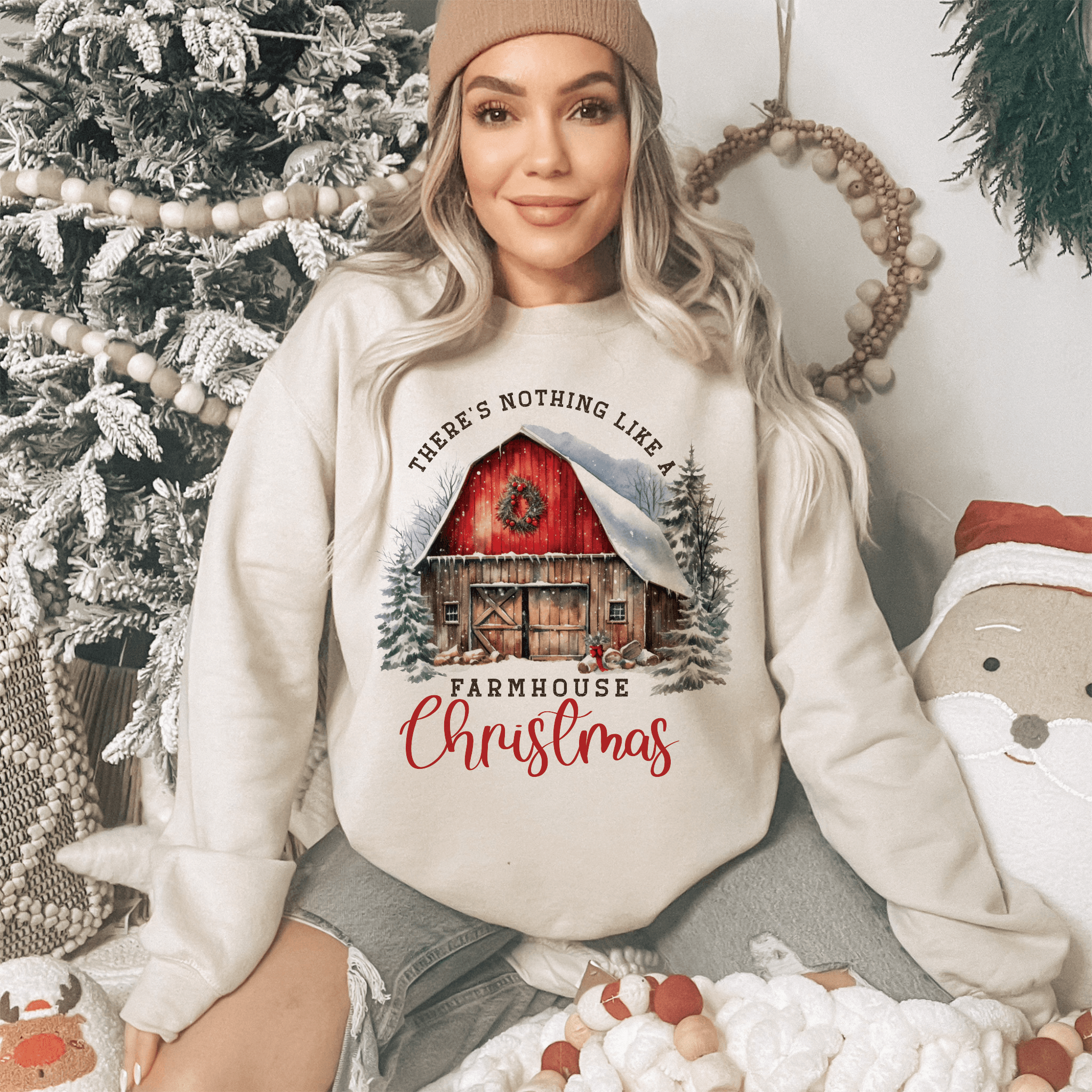 Embrace the warmth and charm of the festive season with our 'Farmhouse Christmas' cozy sweatshirt. Detailed with a picturesque farmhouse design, this soft and comfortable piece captures the essence of a serene winter holiday. Available in multiple colors and sizes on our website, it's the perfect addition to your winter wardrobe. Handcrafted with love by our dedicated small business.
