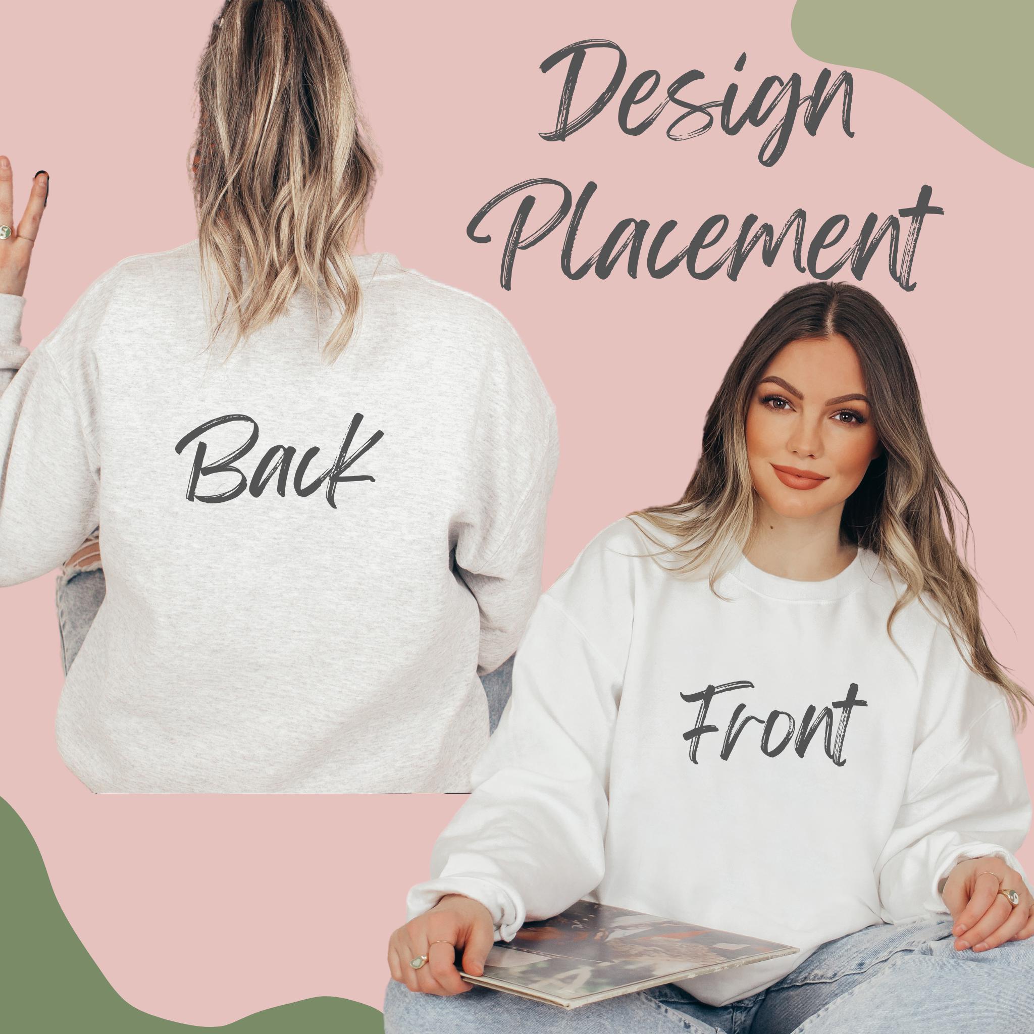 Choose between front or back of sweatshirt.