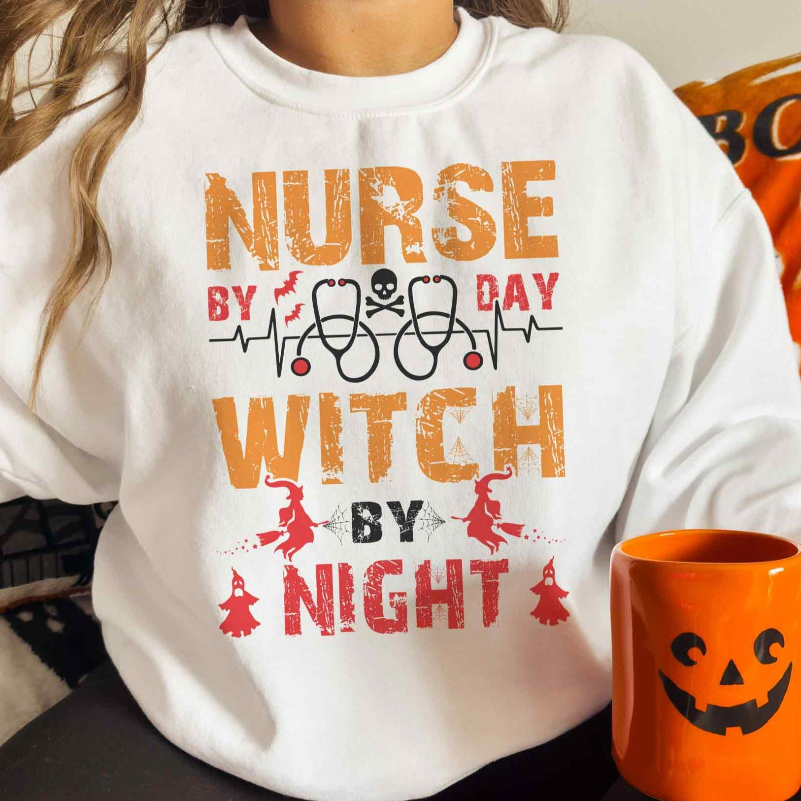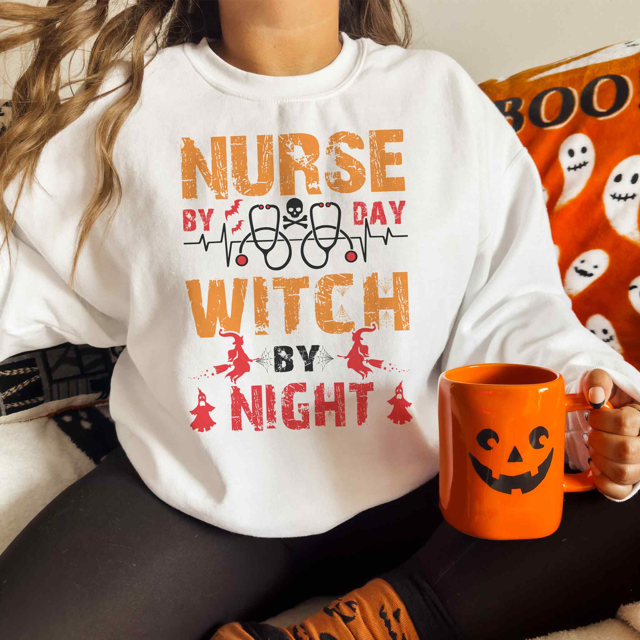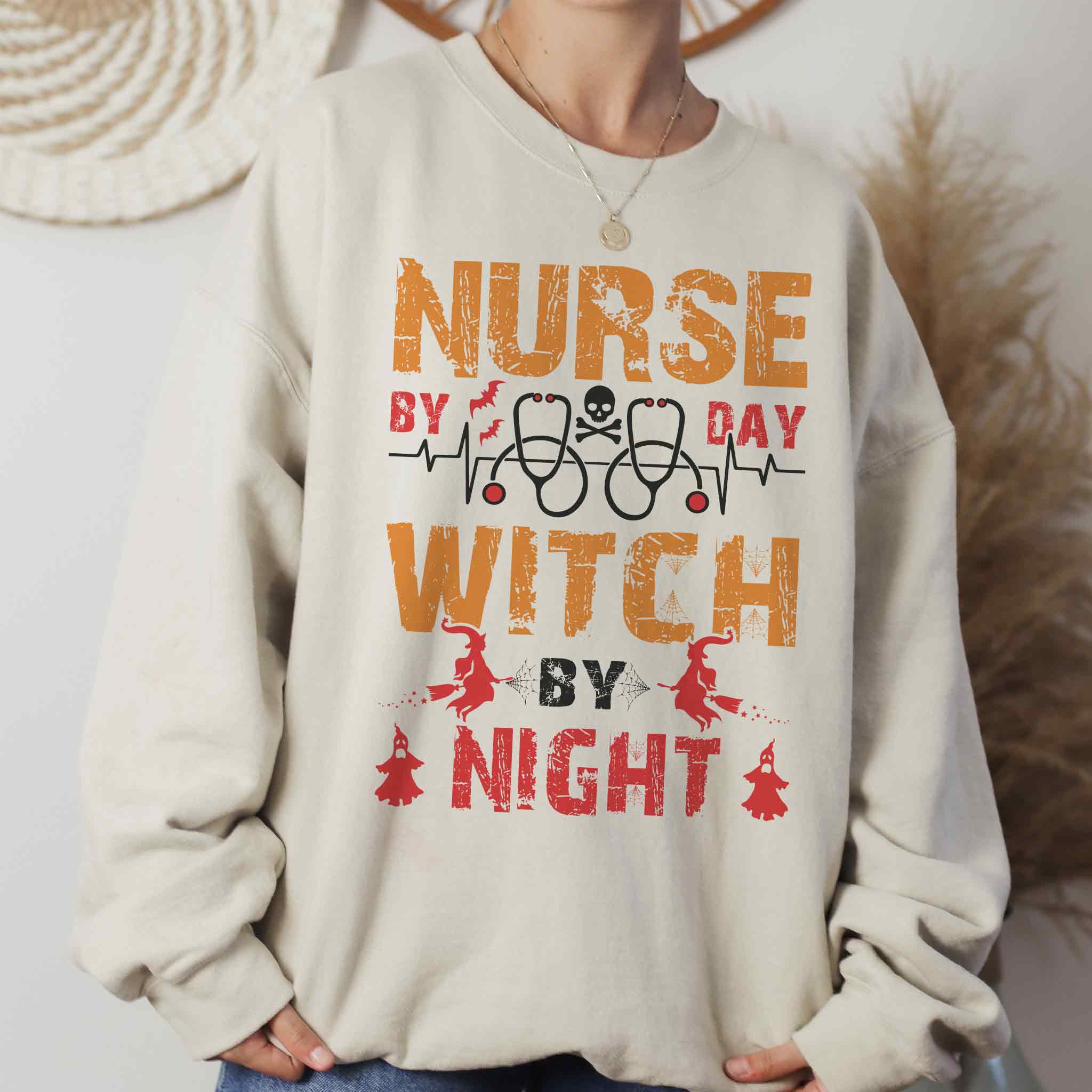 Blending healthcare heroism with midnight magic, our "Nurse By Day Witch By Night" sweatshirt captures the heart of every medical sorceress. Featuring a distressed aesthetic, this unique design integrates a heartbeat, whimsical witches, and bats. Available in a range of colors and sizes on our website. Crafted with care by our small business, perfect for nurses with a mystical edge!