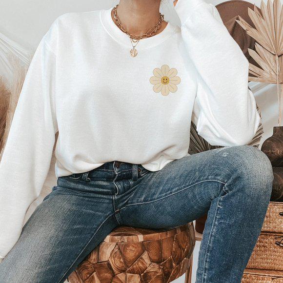 Our sweatshirts and tees are true to size. For a more oversized fit, we recommend sizing up.