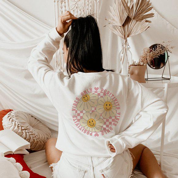 Positivity Vibes Only Pink Checkered Smiley Sweatshirt